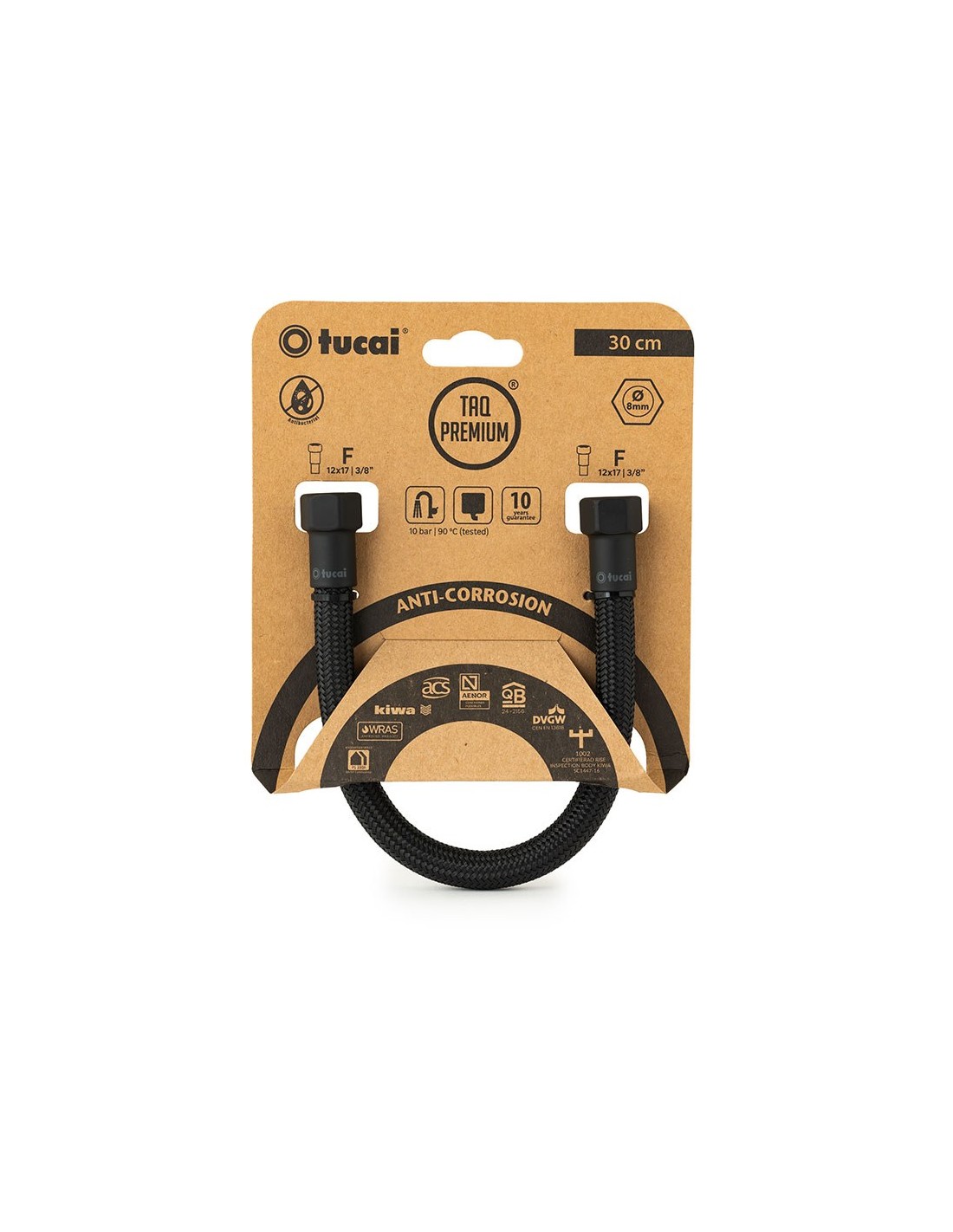 Latiguillo flexible negro h - h 3/8 pulg, tubo de ø8 mm, 10 bar, temperatura máxima 90°, anti-corrosión y anti-bacteriano, 30 cm