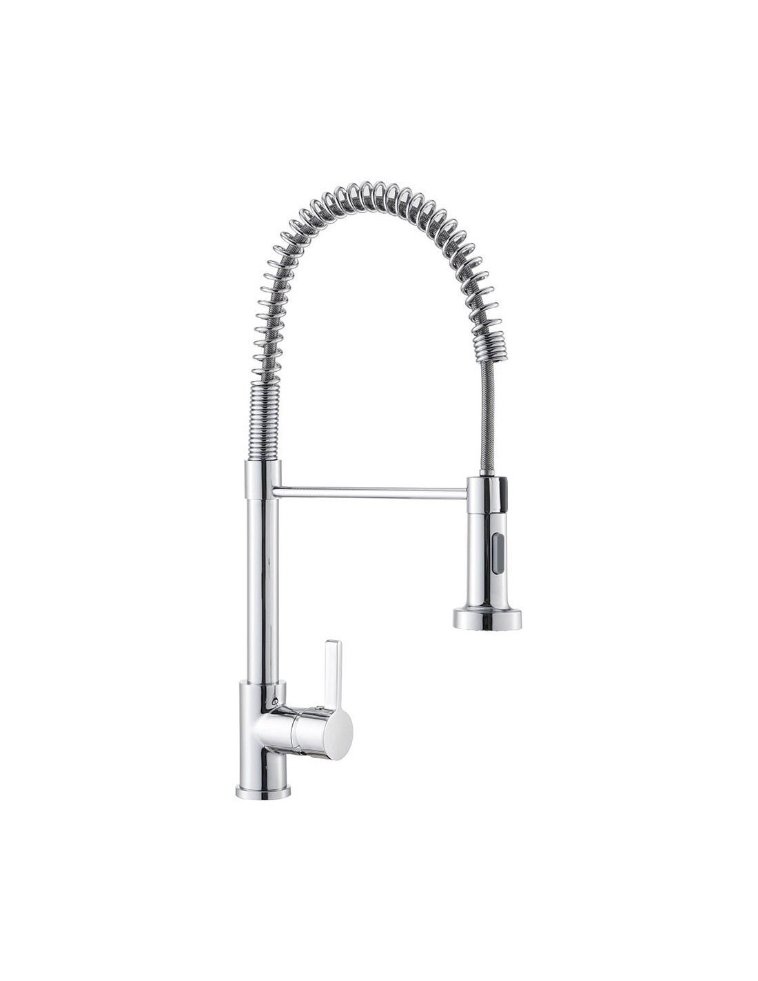 Grifo de cocina monomando con caño alto y giratorio, serie pantón. fabricado en cuerpo de latón con mando de zinc. acabado cromado. cartucho de ø35 mm. mango extraíble con 2 funciones. incluye: conexiones flexitub con certificado aenor m10 3/8 pulg x 400 mm, y juego de fijación de fácil instalación. dimensiones: ø48 x 255 x 530 mm