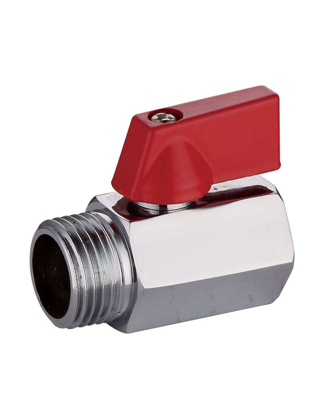 Válvula esfera mini m-h ½ pulg con palanca roja. fabricado en latón con maneta de aluminio y tornillo de acero inoxidable