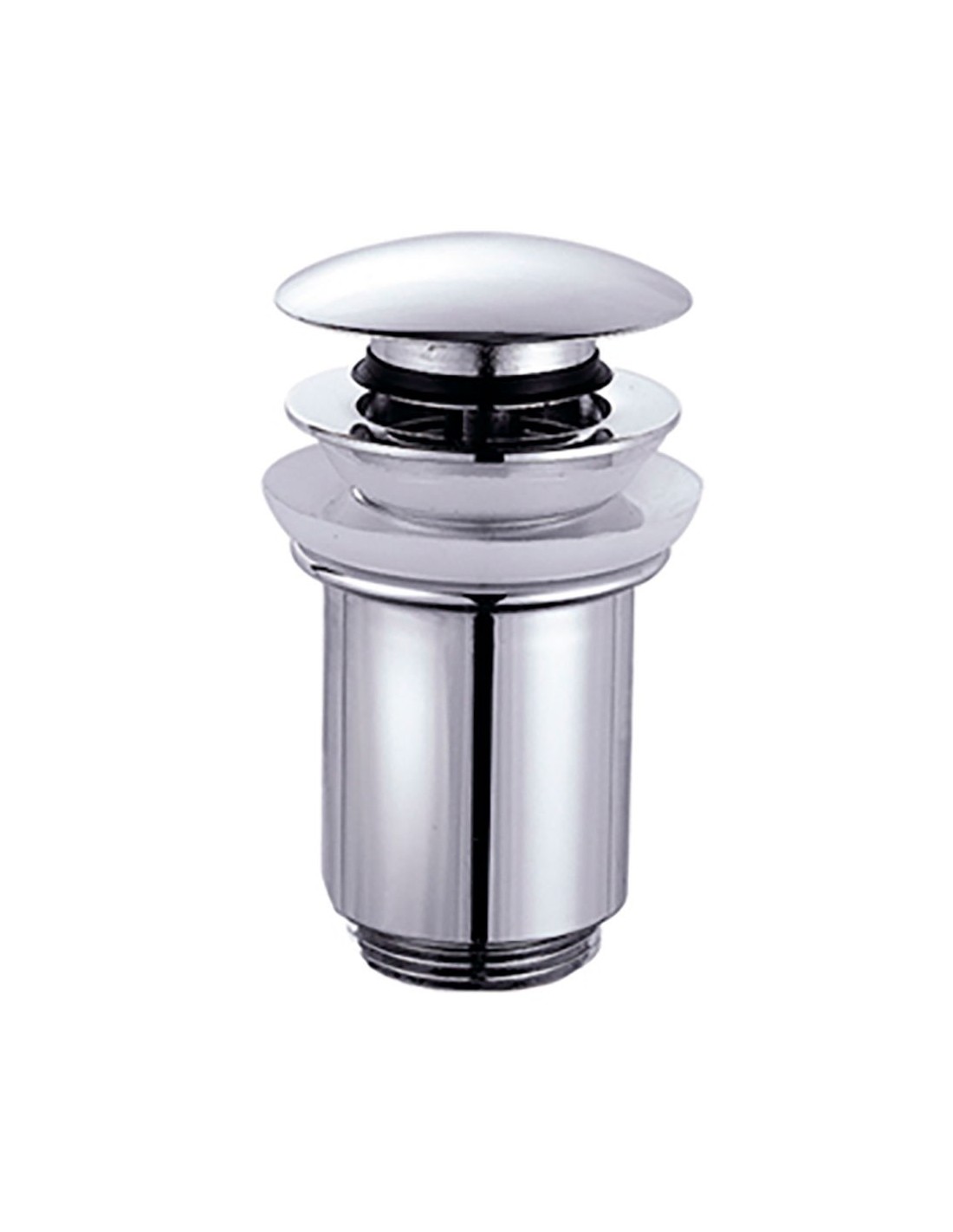 Válvula clic-clac grande con rosca de conexión de 1 ¼ pulg. permite abrir y cerrar herméticamente el desagüe. ideal para lavabo y bidé. fabricado en latón cromado y acero inoxidable, diámetro del embellecedor ø66 mm, altura del cuerpo 82 mm