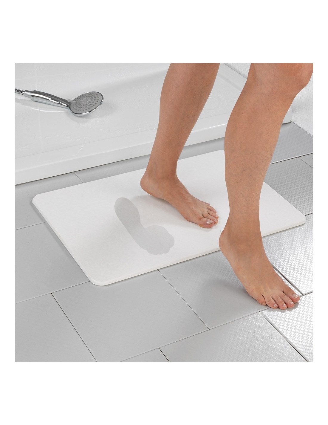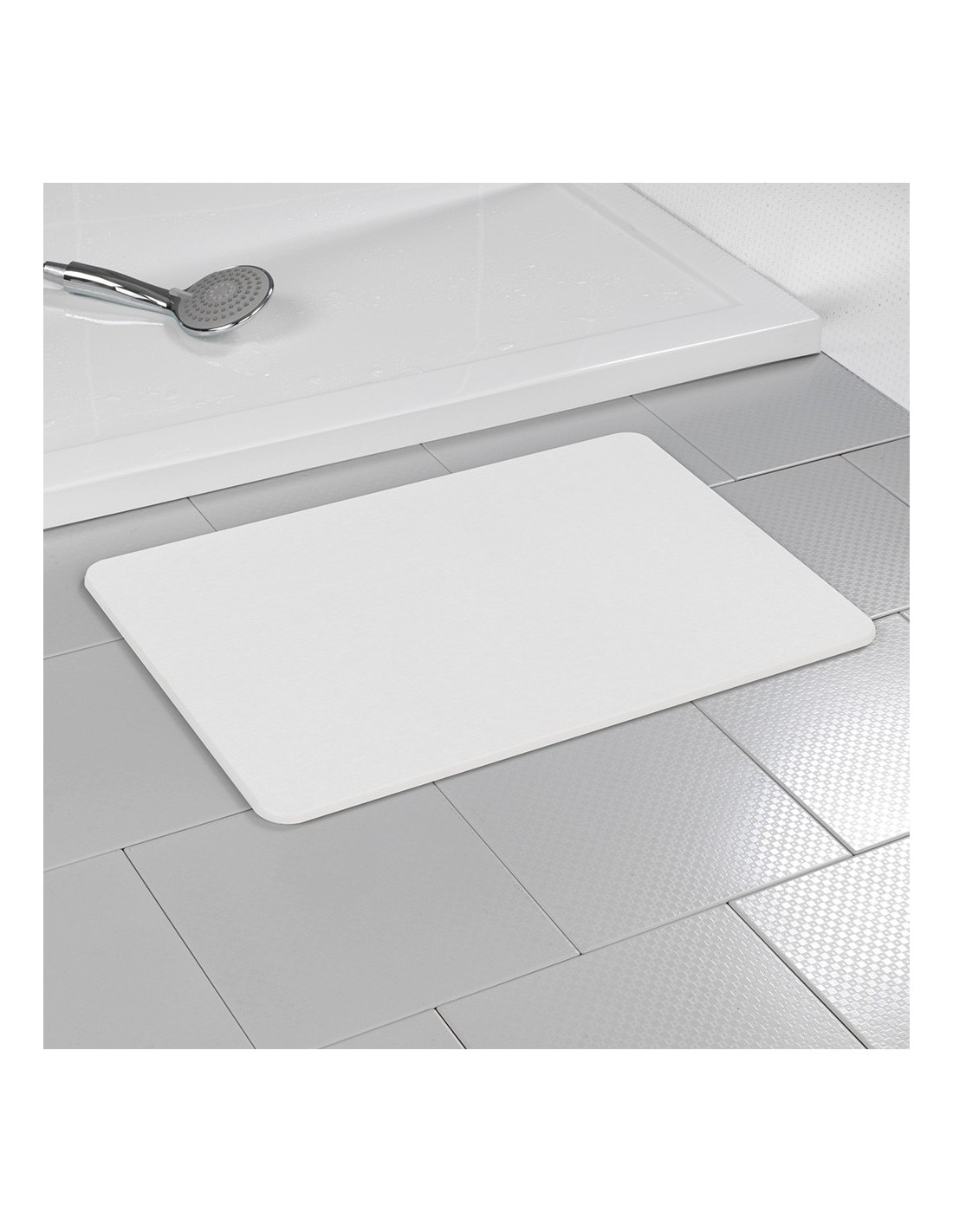 Alfombra de baño antideslizante de diatomita, blanco, 60 x 39 cm. altamente absorbente, antibacteriana y de secado rápido. evita la acumulación de olores. incluye papel de lija para su limpieza
