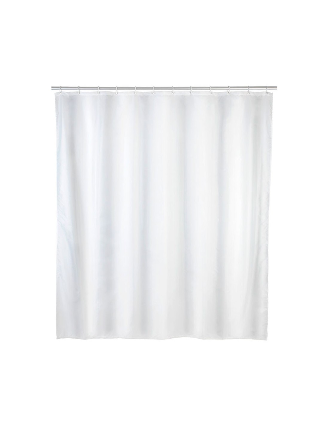 Cortina de ducha, color blanco, 120 x 200 cm. fabricada en peva reciclable. con ojales reforzados de metal inoxidable. tejido impermeable