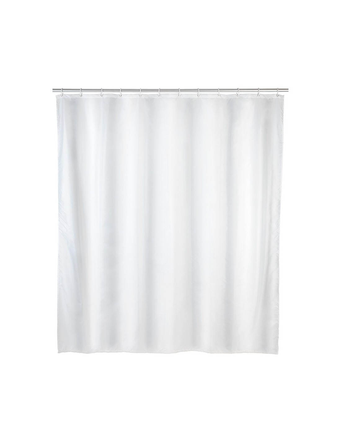 Cortina de ducha, color blanco, 180 x 200 cm. fabricada en poliéster. con ojales reforzados de metal inoxidable. borde con peso de goma, tejido impermeable