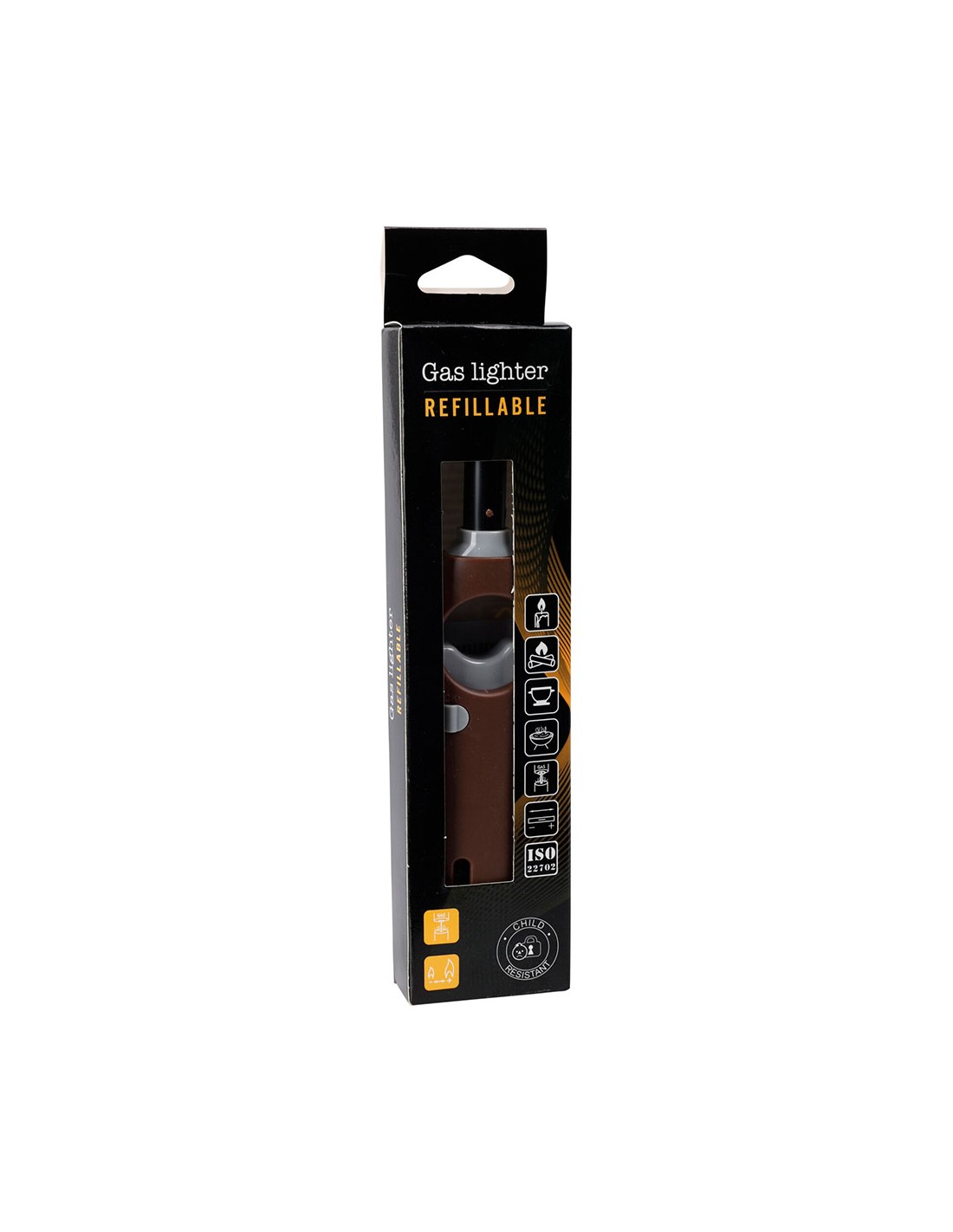 Mechero electrónico recargable, con bloqueo, llama regulable, colores surtidos