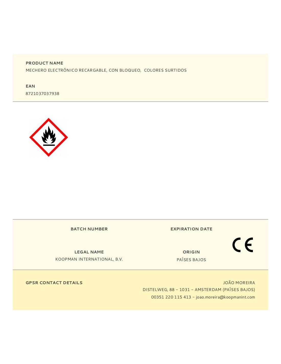 Mechero electrónico recargable, con bloqueo, colores surtidos