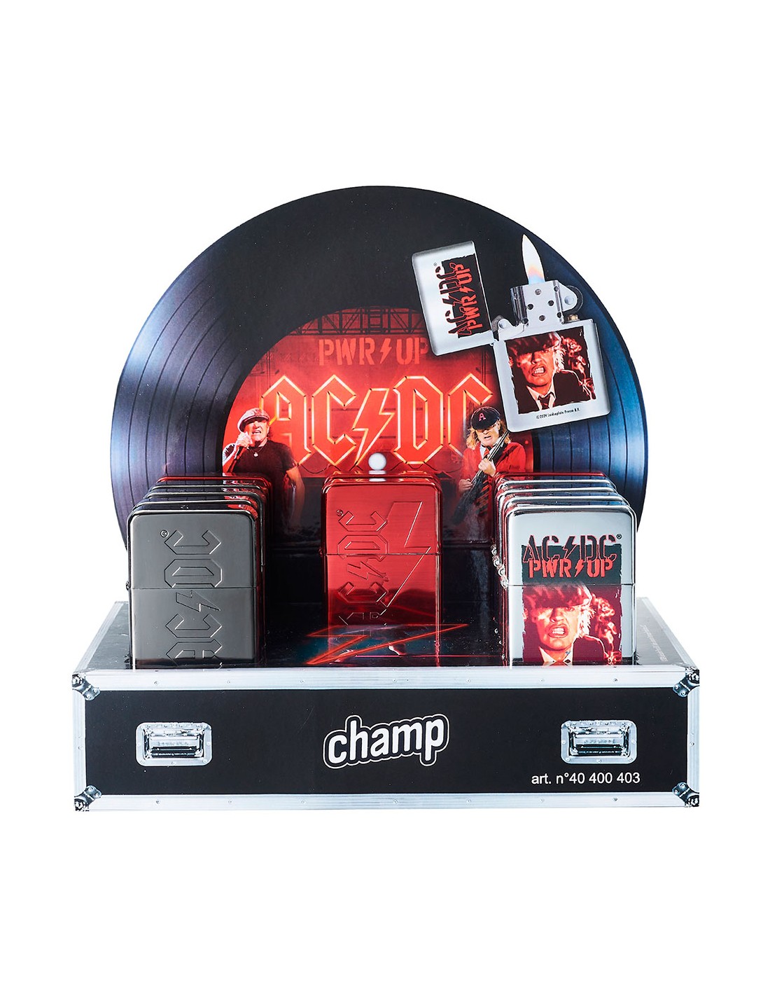 Mechero gasolina ac/dc, modelos variados. presentado en expositor de 12 uds