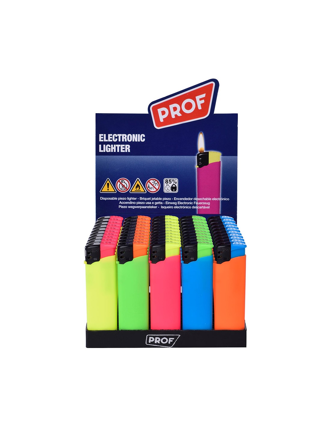 Encendedor electrónico rubber touch, colores surtidos. presentado en expositor de 50 uds