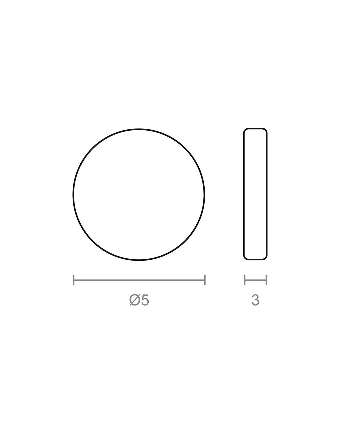 Imán neodimio disco im28 con forma de disco soporta una carga máxima de 0,60 kg magnetización axial gauss 4,6 diámetro de 5 mm y espesor de 3 mm material neodimio acabado níquel