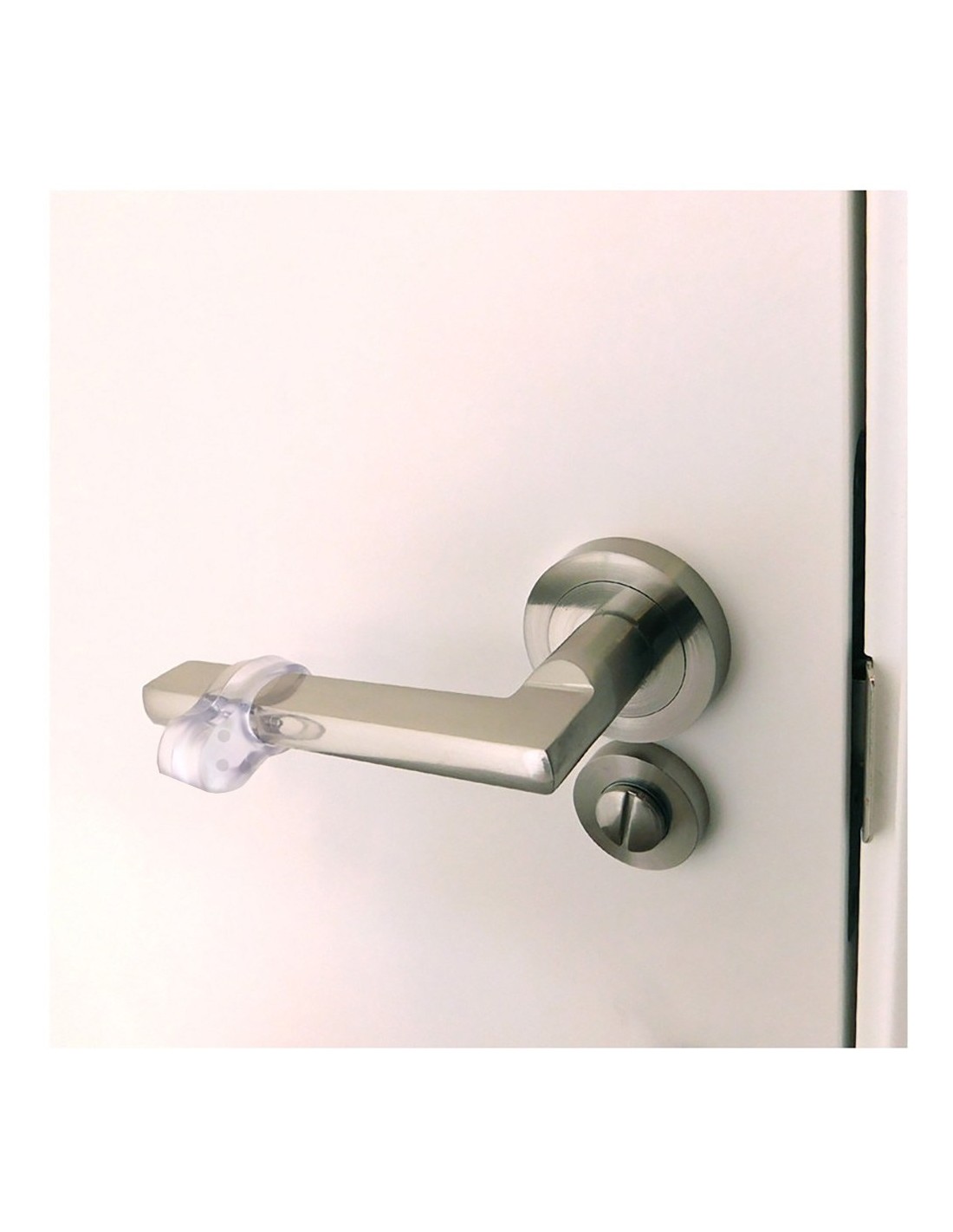 Tope puerta manilla amortiguador tp16, transparente, para evitar impactos al abrir puertas y ventanas y así prevenir golpes y daños no deseados en la pared. se instala sobre la maneta de la puerta o ventana con su lado protector hacia el lado del golpe a cubrir. material: pvc. orificios para la maneta de unos ø18 mm. dimensiones: 30 x 22 x 13 mm