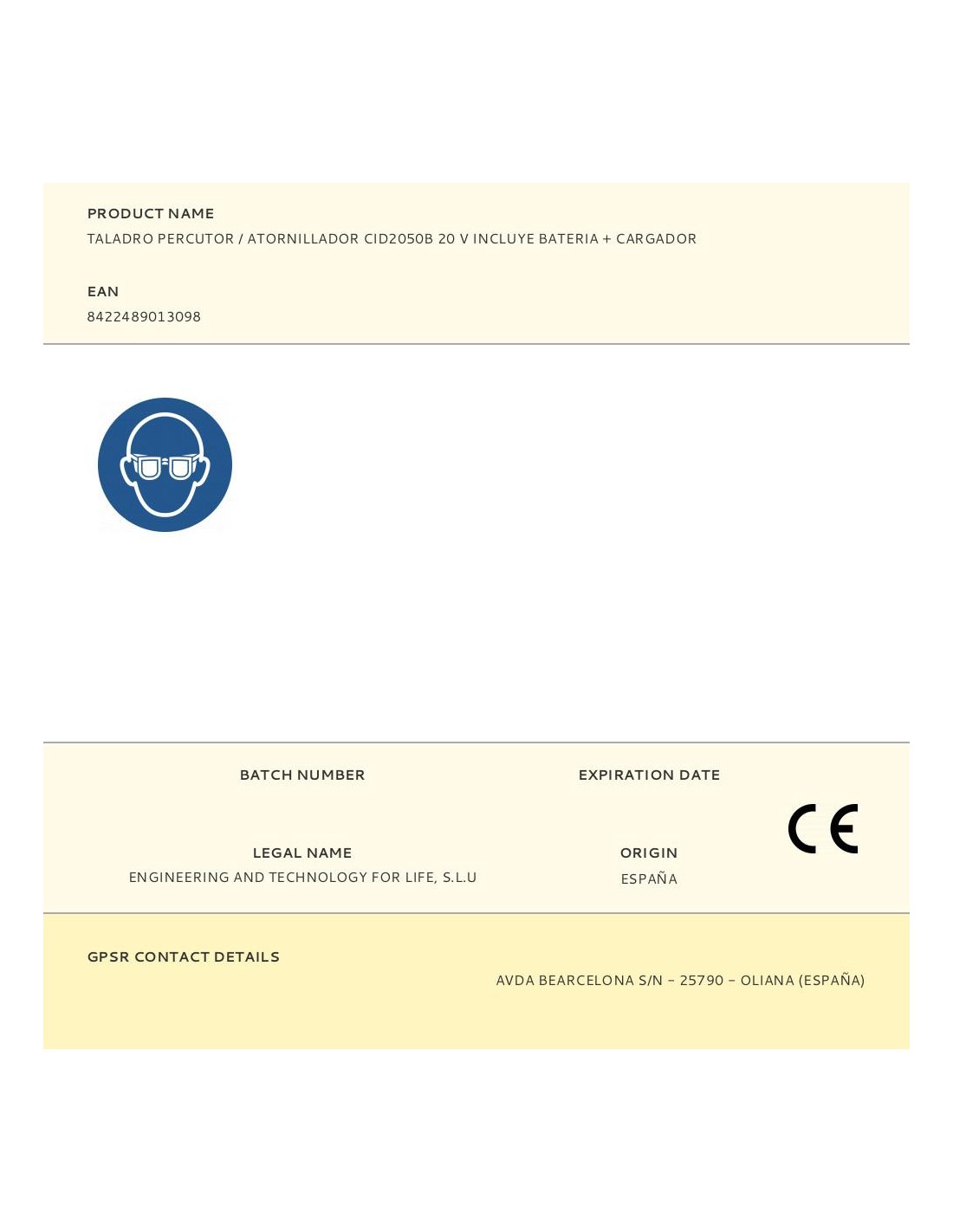 Taladro percutor / atornillador cid2050b 20 v incluye bateria + cargador