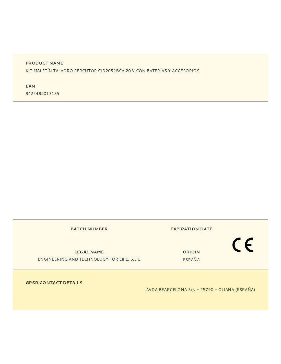 Kit maletín taladro percutor cid2051bca 20 v con baterías y accesorios