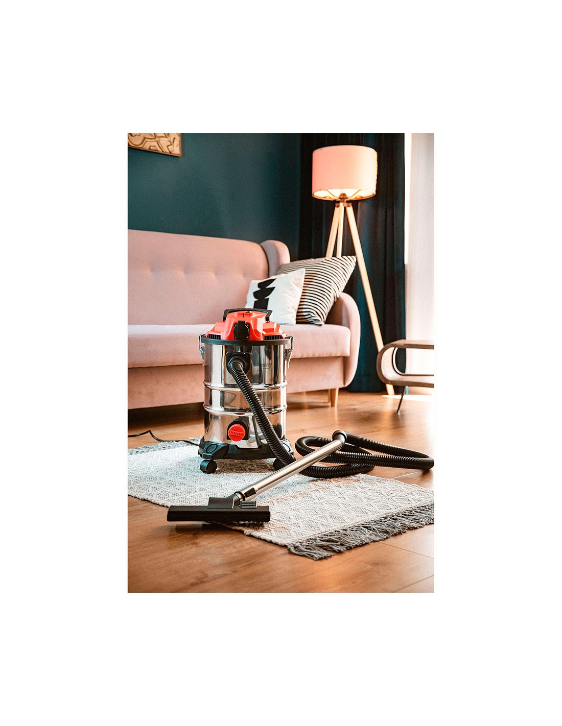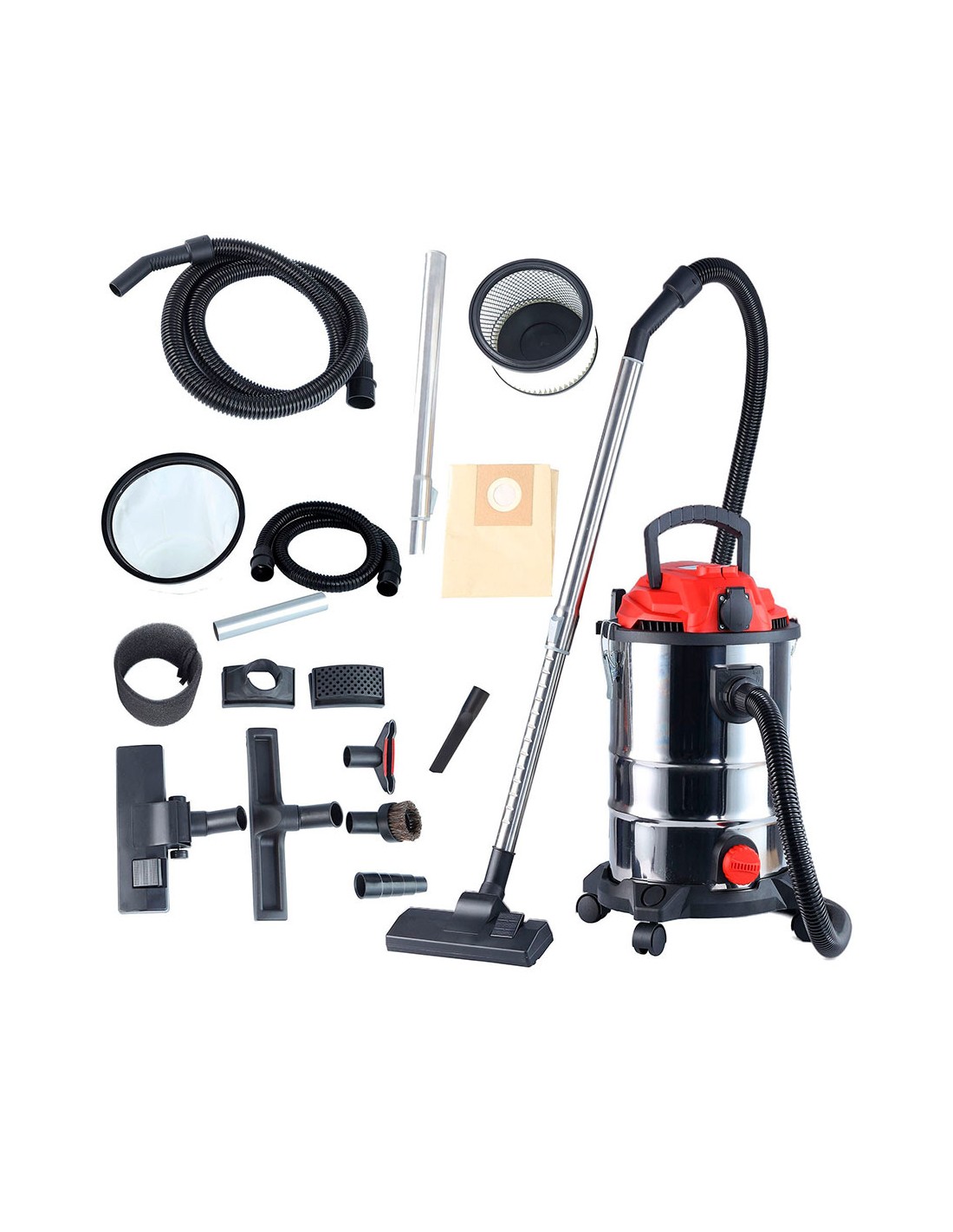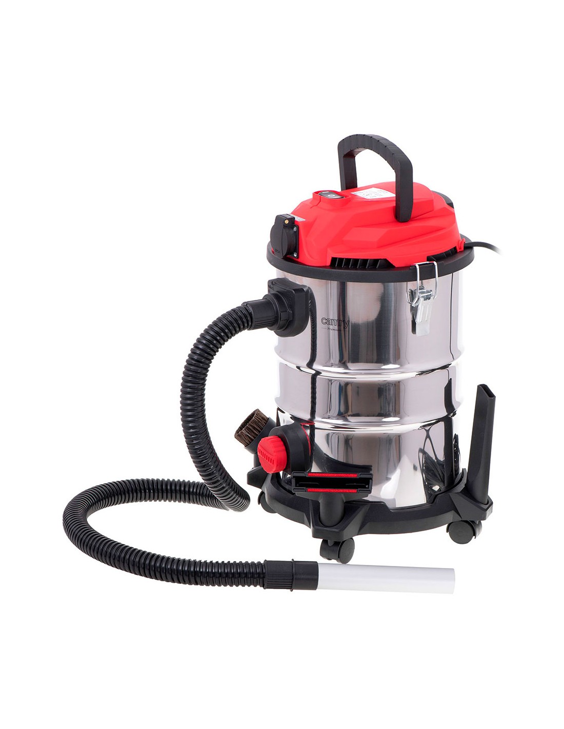 Aspirador industrial 3400 w, cr 7045, con toma corriente aspira seco, húmedo y sopla, 6 funciones (grandes superficies de suelo, coche/muebles tapizados, ceniza hasta 45°c, polvo construcción, barro/polvo húmedo/arena mojada y soplado) rango de trabajo 19 m, tanque de acero inox 25 l con tapón de drenaje, caudal de aire 36 l/seg, fuerza succión 20 kpa, base extraíble con 4 ruedas accesorios: tubo telescópico acero, manguera plástica 2,5 m, manguera ignífuga 1,5 m con tubo aluminio 23 cm para cenizas, 5 cepillos: 3 para tapicerías, 2 para suelos húmedo/seco doméstico e industrial 4 filtros: 1 hepa lavable para seco, 1 algodón ignífugo, 1 bolsa papel 25 l, 1 de esponja lavable potencia nominal 1200 w, toma hasta 2000 w 220-240 v ~50/60 hz 82 db ø40 x 55 cm