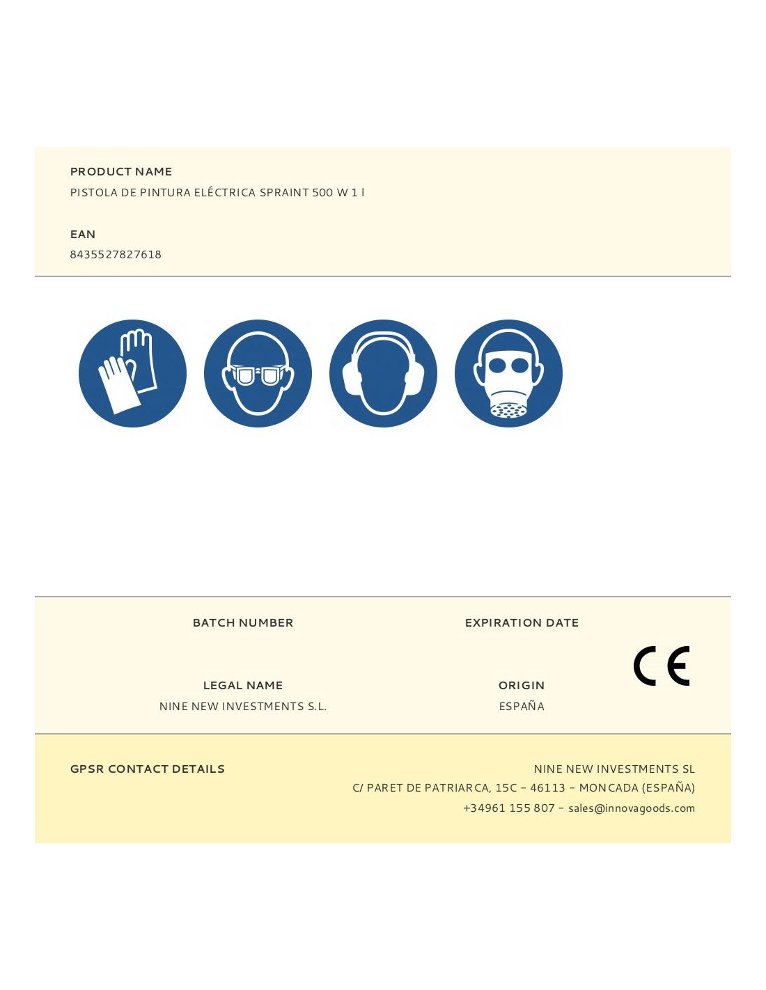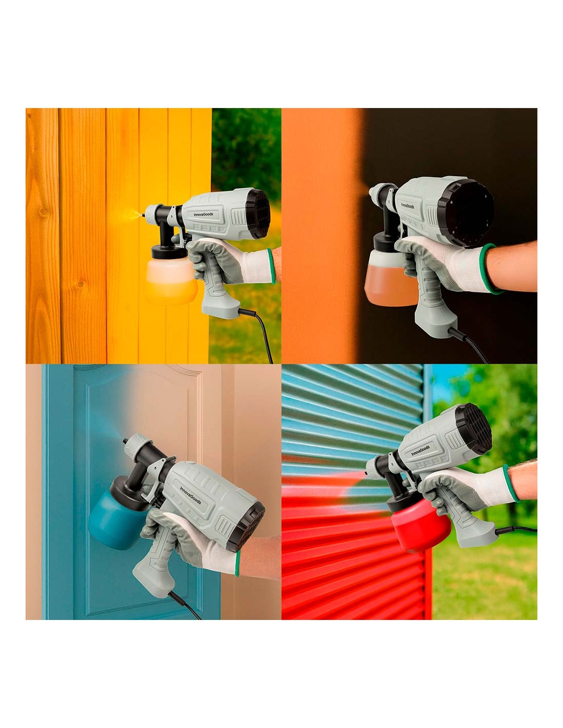 Pistola de pintura eléctrica spraint 500 w, capacidad 1 l, para pintar, lacar y barnizar todo tipo de superficies, contiene 1 pistola de pintura, 1 medidor de viscosidad, 1 aguja de limpieza, 1 cepillo de limpieza, 3 boquillas remplazables y 2 filtros de papel, material polipropileno y polietileno