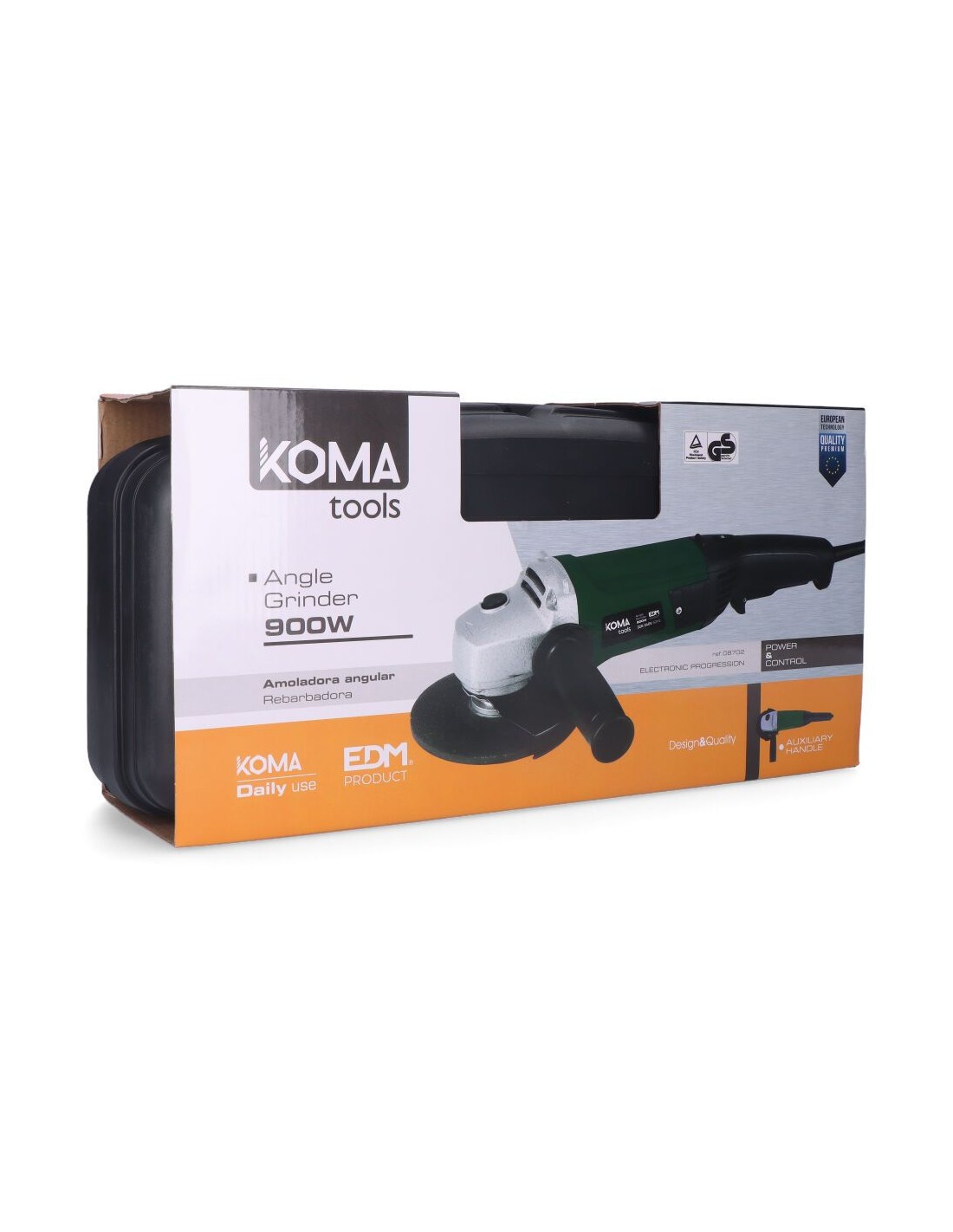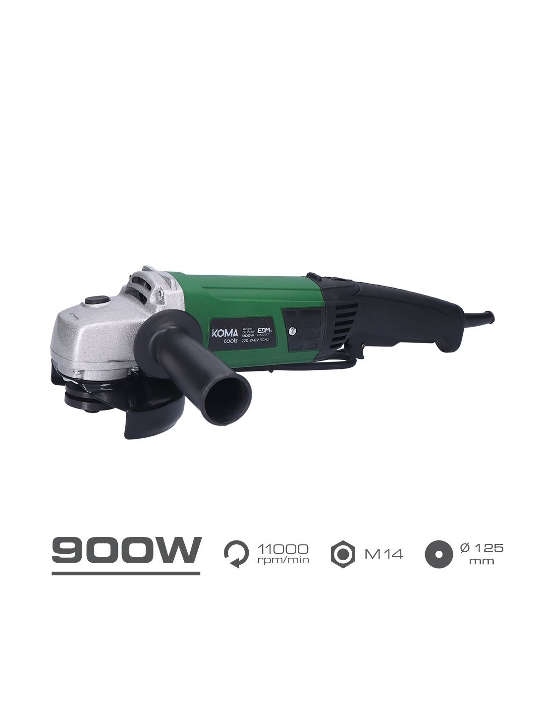 Amoladora angular eléctrica de 900 w, para disco de ø115 mm (no incluido), velocidad 11.000 rpm, rosca del husillo de m14, con interruptor de seguridad, mango ergonómico de tacto suave, mango adicional, cable de conexión de 2 m, maletín de transporte, 230/240 v 50 hz, dimensiones: 40 x 22 cm