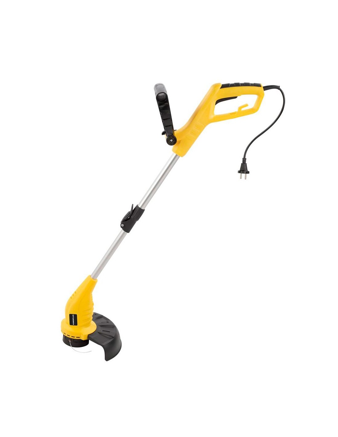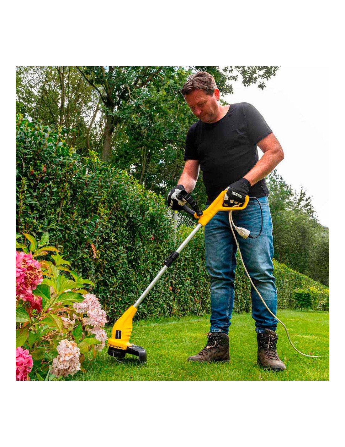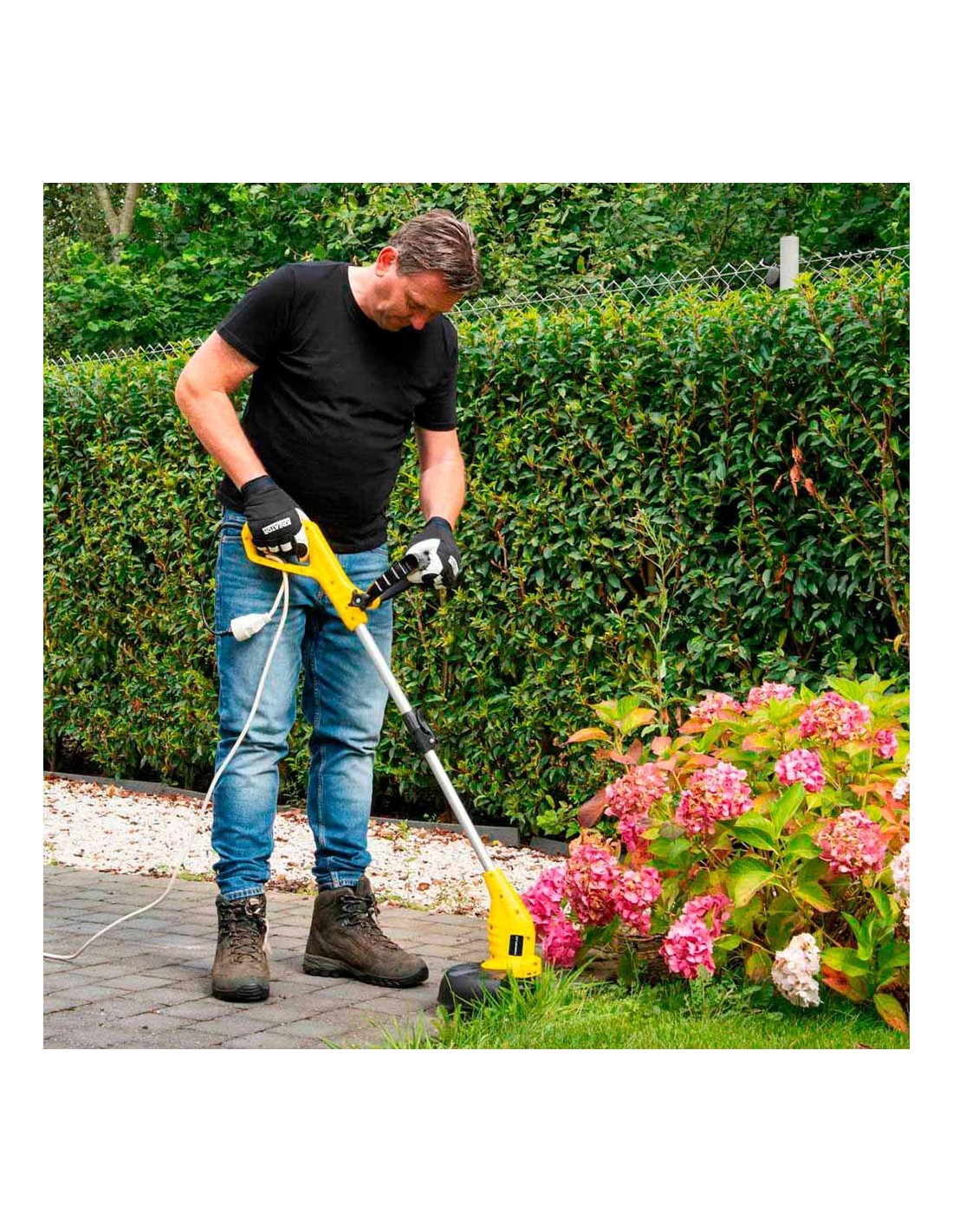 Cortabordes 350 w ø250 mm para jardines pequeños. con alimentación inteligente del hilo de corte, eje telescópico de 100 a 120 cm, nivel de potencia sonora hasta 95db. la carcasa sirve de cubierta protectora del cabezal de corte. mango de agarre suave
