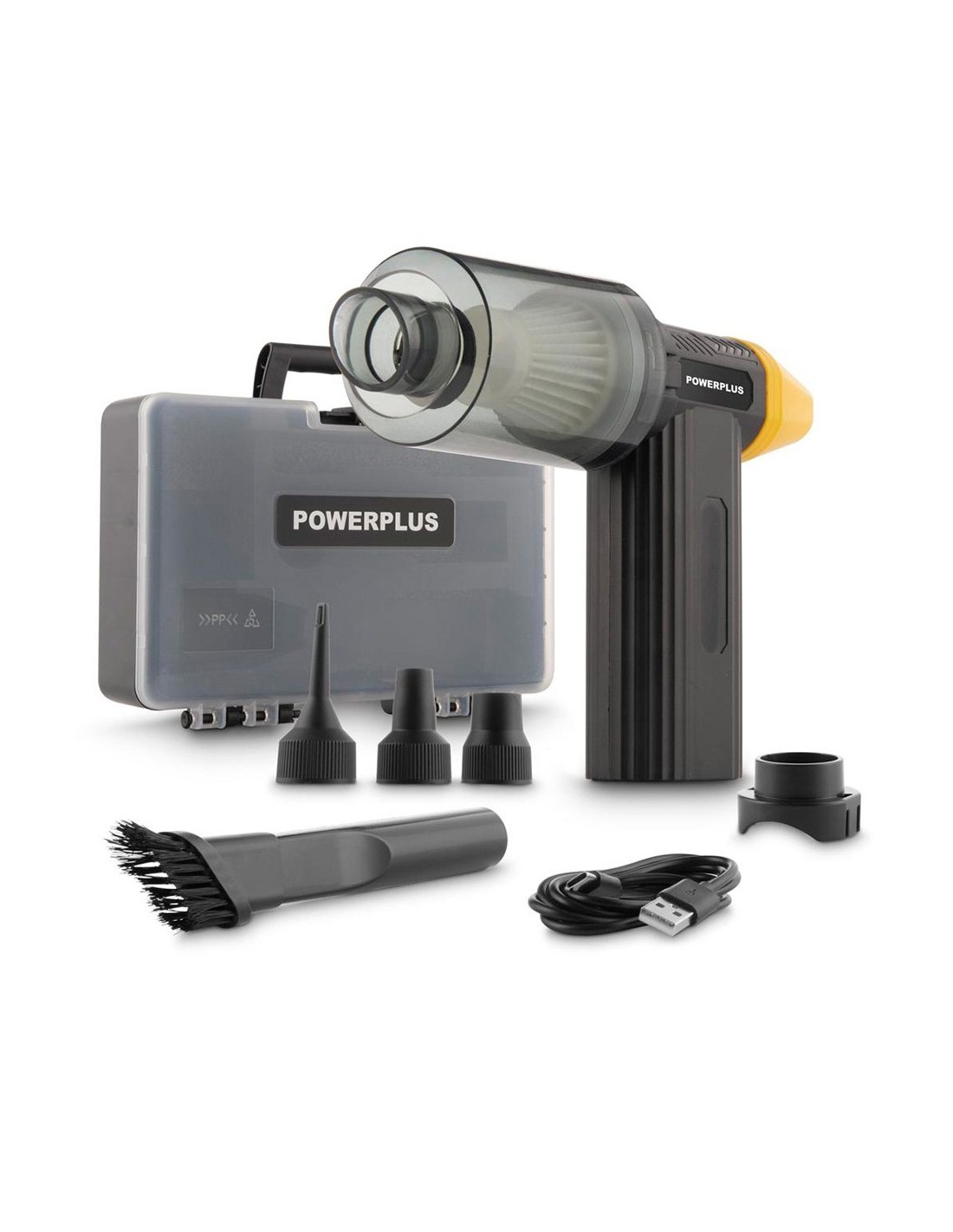 Mini aspirador y soplador 8 v con accesorios. con bateria y carga usb. capaciadad de succión de 15,7 kpa. máximo volúmen de aire 0.71 m³/min. capacidad del deposito 0,11 l. filtro lavable. incluye: tubo, adaptador, 4 boquillas y cable usb