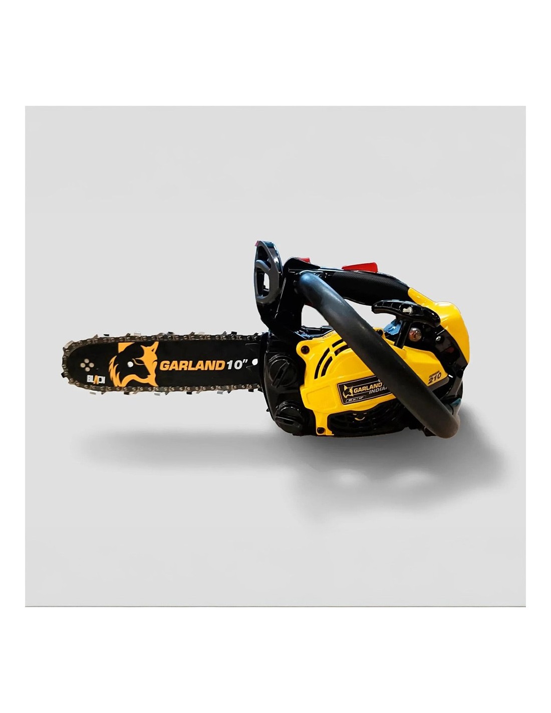 Motosierra a gasolina, modelo indiana 210-v24, a 2 tiempos, 25 cc, 1 cv. longitud de corte de hasta 25 cm. carburador con cebador para arranque en frío más rápido y con menos esfuerzo. motor con cilindro en posición horizontal. sistema antivibración. incluye: espada de 10 pulg, cadena, kit de herramientas, bote de mezcla y protector de espada