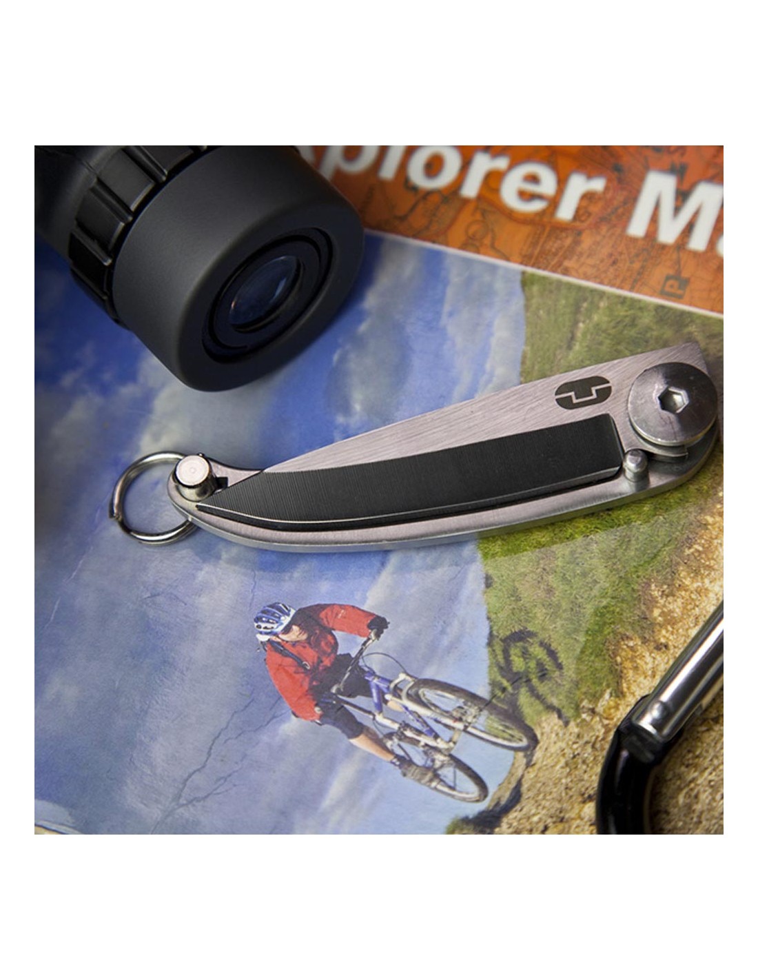 Bare navaja / llavero minimalista con un peso de solo 16 gramos y construido en acero inoxidable 420 de alto grado, la navaja bare es una herramienta resistente y confiable para el trabajo o el uso diario, a la vez que es ligero y lo suficientemente pequeño como para caber cómodamente en su bolsillo. presenta un pasador de cuchilla de bloqueo de liberación rápida, que actúa como un seguro protector de la cuchilla cuando el cuchillo no está en uso