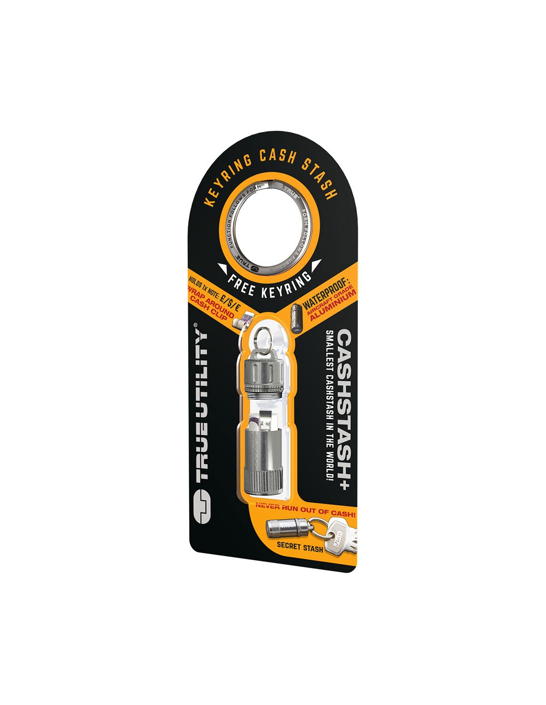 Cashstash + le garantiza que nunca se quedará sin efectivo en una emergencia. con un diseño similar al cashstash, pequeño y ligero.idoneo para colgar en un llavero. es de acero inoxidable contiene una nota de cualquier denominación a su alrededor. diseñado con una junta tórica de neopreno, es resistente al agua