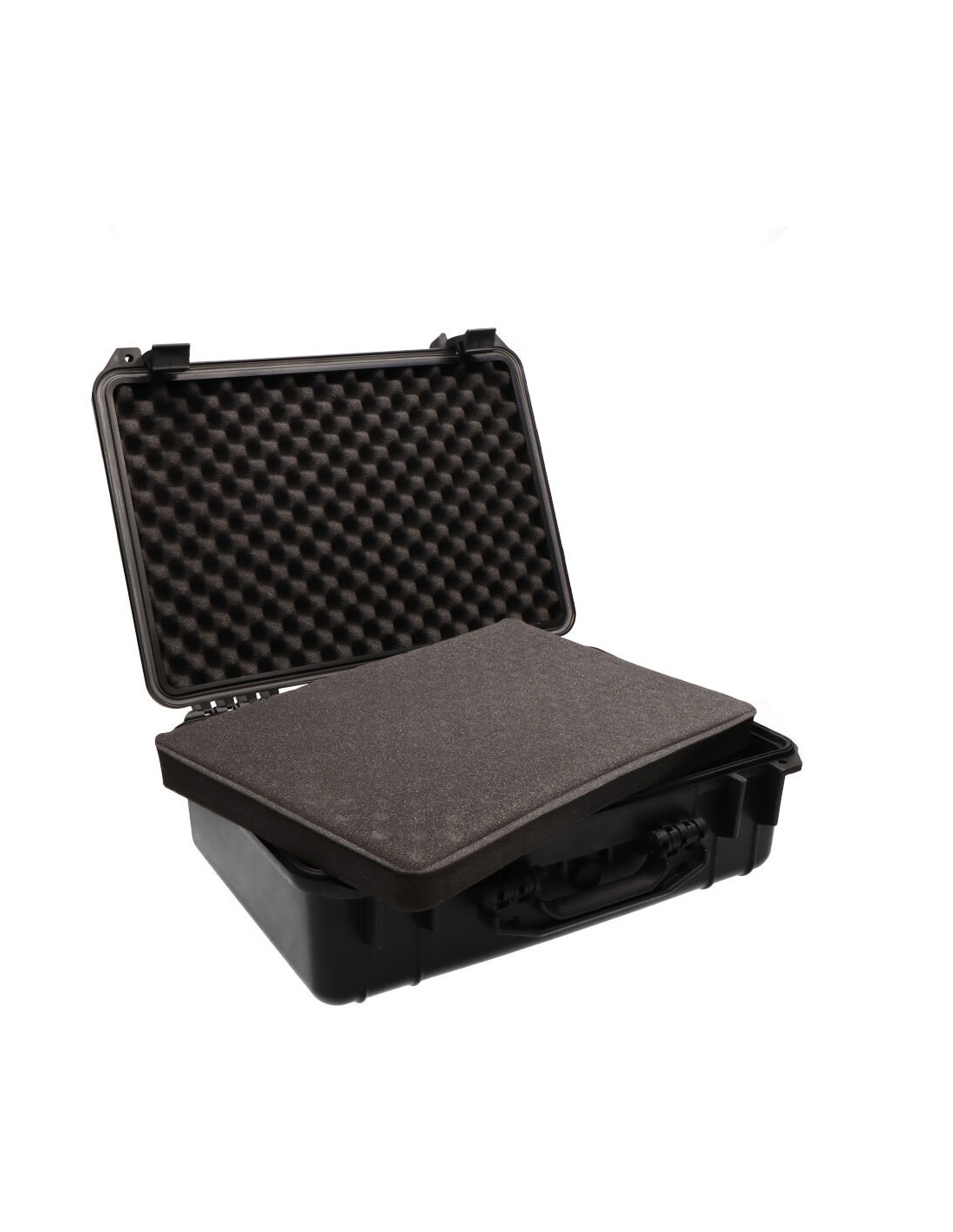 Maleta estanca antichoque 46,5x36x17,5cm. hecho de plástico de ultra alto impacto. resistente al agua y a los golpes, aplastamientos, polvo, etc, espuma interior recortable. workpro