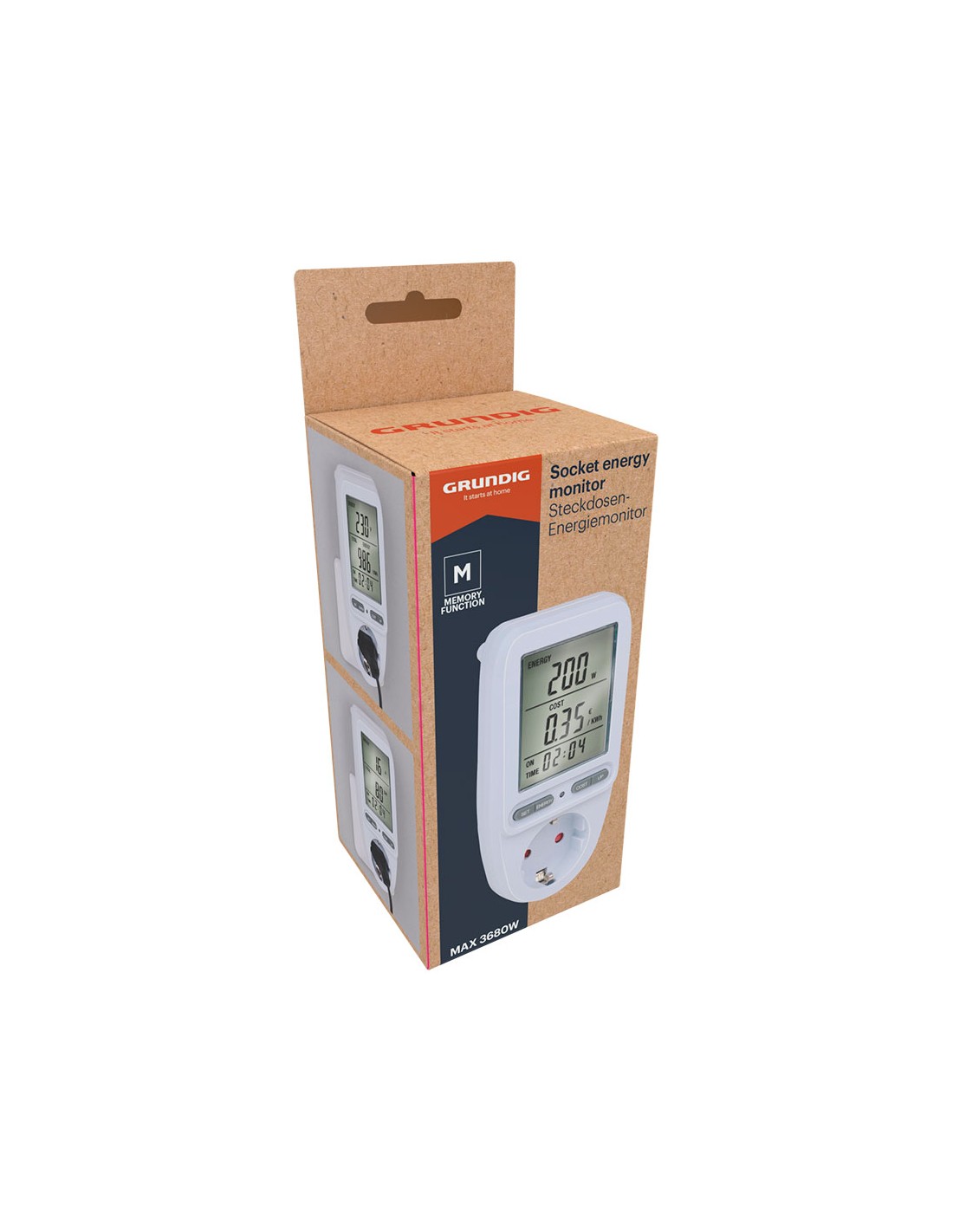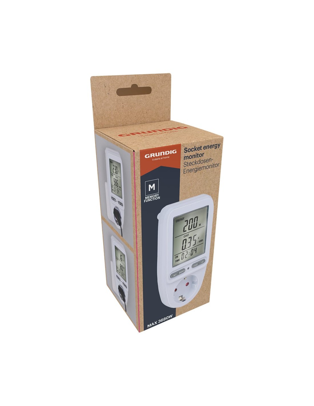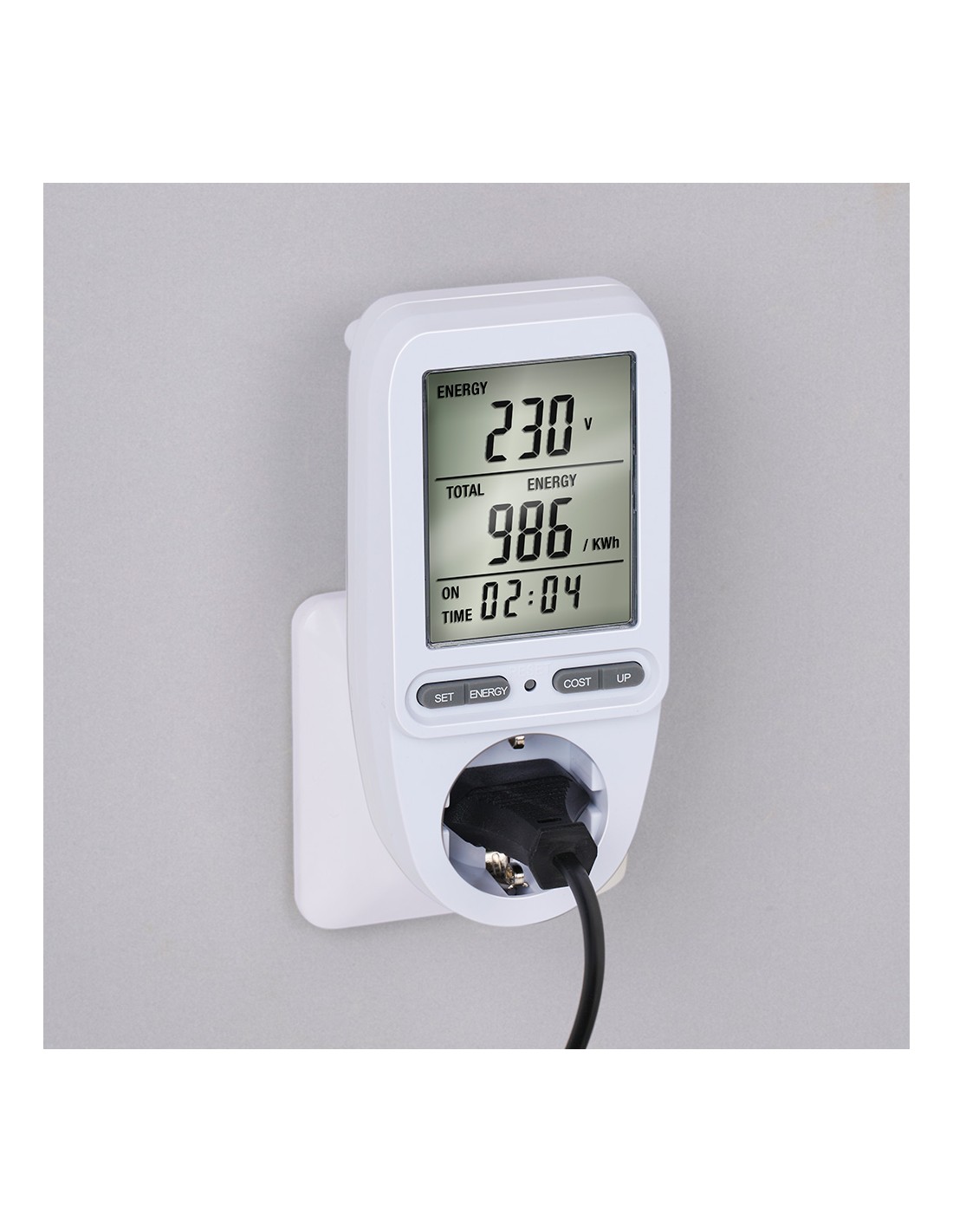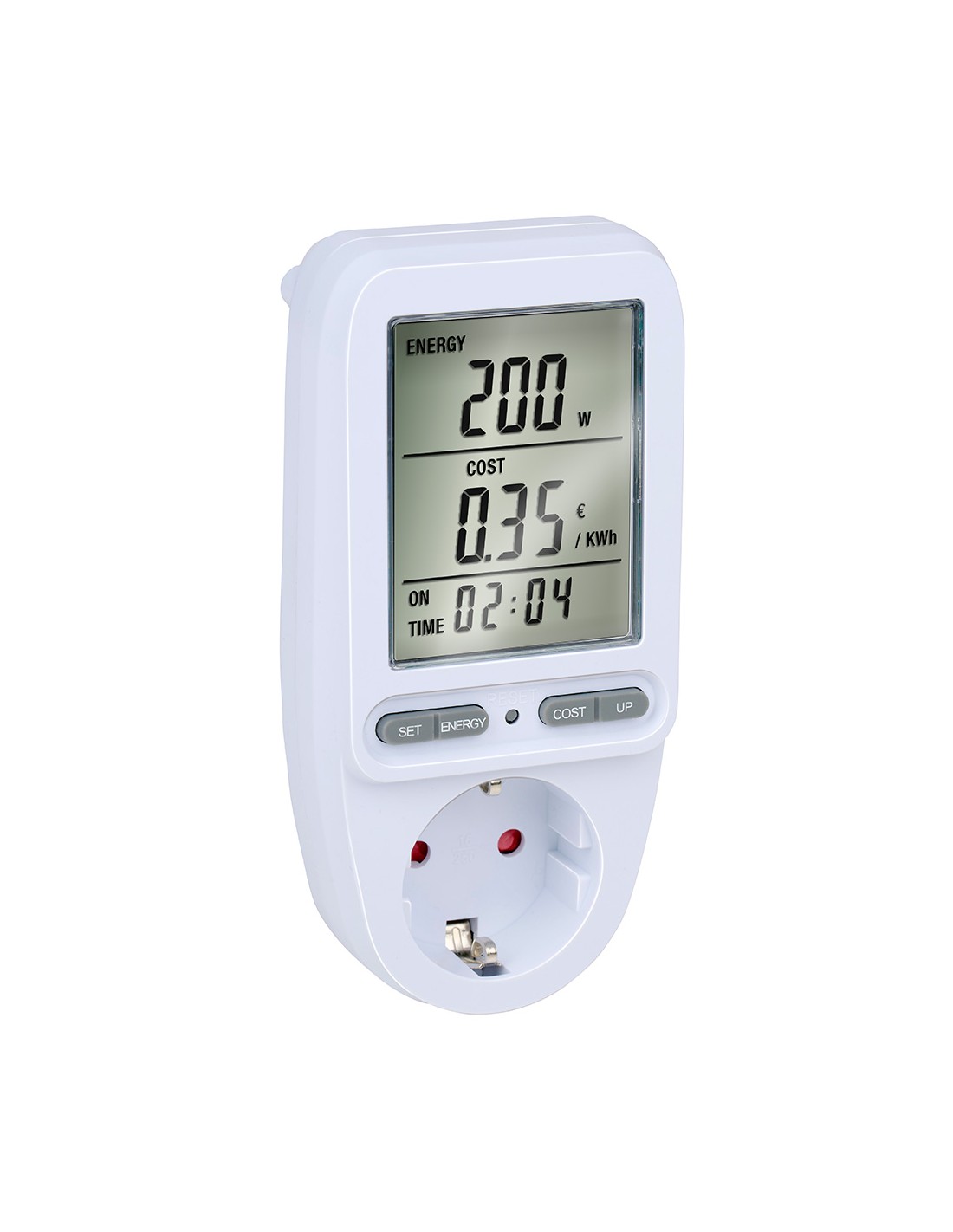 Mide el consumo de electricidad y los costos de dispositivos domésticos, máximo 3680 w, 16 a, 250 v con función de memoria, dimensiones 7 x 7,5 x 14,5 cm