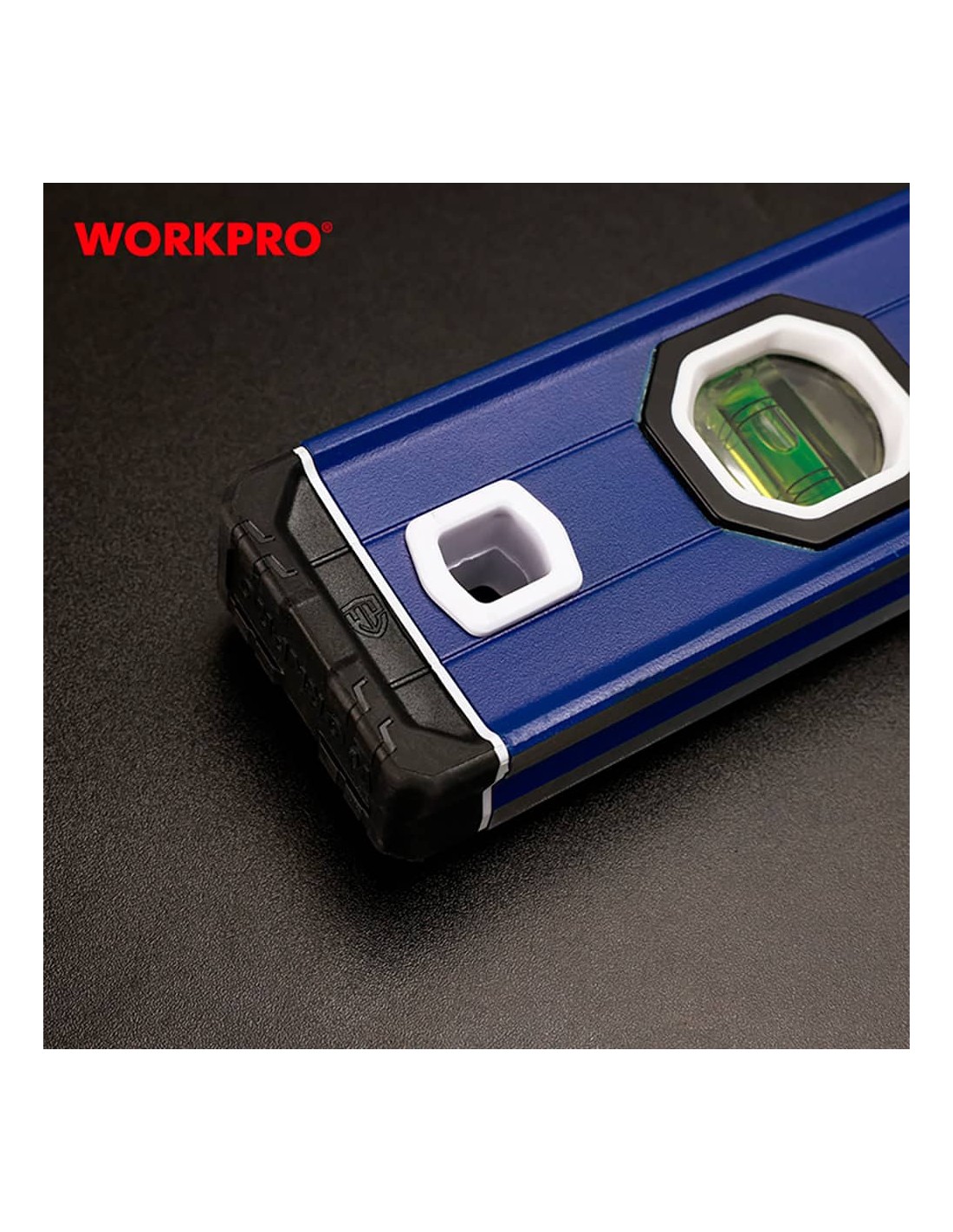Nivel de caja de aluminio de 900 mm, con base magnética, conteras a prueba de golpes, anillo de agarre grande, cómodo de usar, aleación de aluminio con tratamiento de oxidación duradero, precisión: 0,5 mm/1 m, 3 viales (45°/90°/180°) la ranura en forma de v es adecuada para superficies redondas y de tuberías con agujero para colgar, color azul