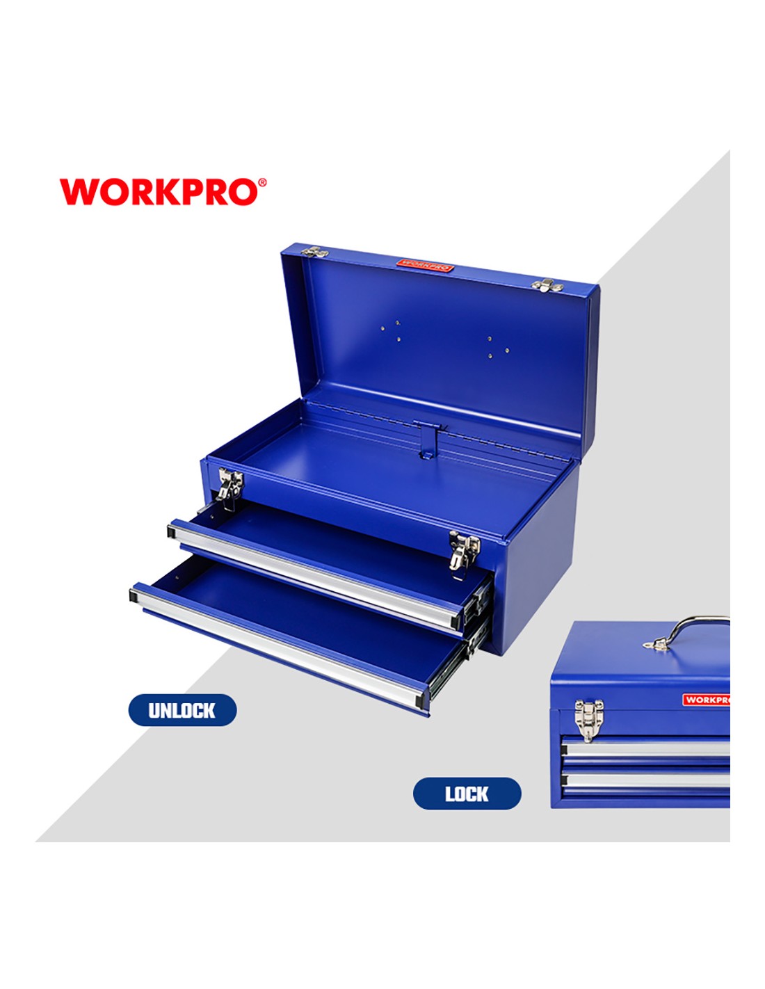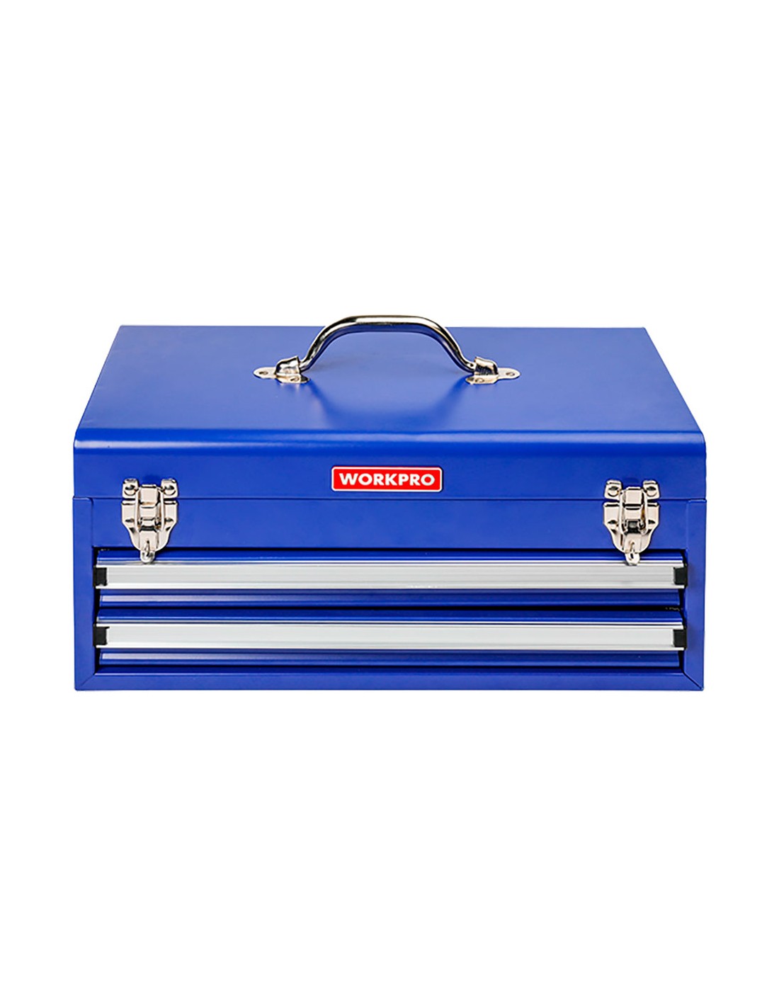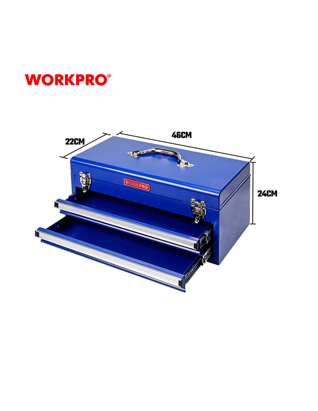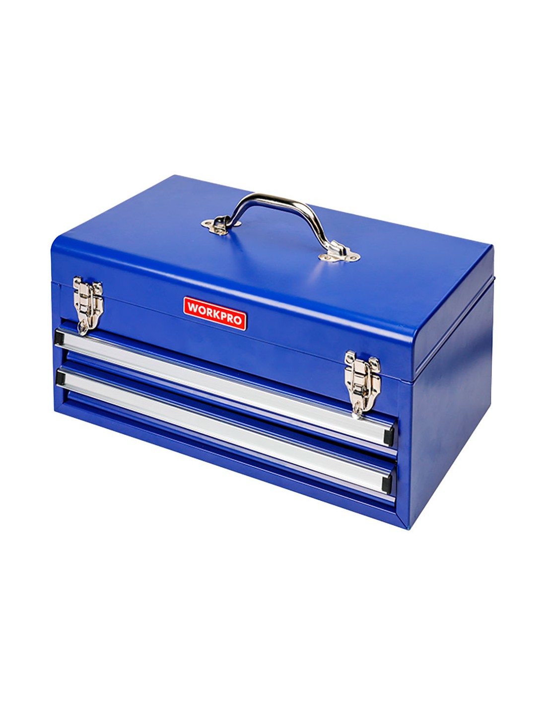 Caja de herramientas metálica, con 2 cajones, grosor del acero 0,6-0,8mm, idónea para colocar herramientas/material asa plegable, superficie pintada al horno para que sea más duradera, acabado de recubrimiento de polvo antióxido color azul
