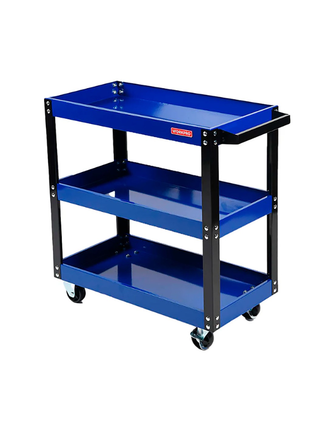 Carro de herramientas con 3 bandejas, estructura completa de metal, robusto y duradero pintado al horno, resistente al uso y a la corrosión, más espacio de almacenamiento, ruedas de pp, sistema de freno capacidad máxima de carga por bandeja: 25 kg color: azul y negro, dimensiones: 75,5 x 35,5 x 70,5 cm