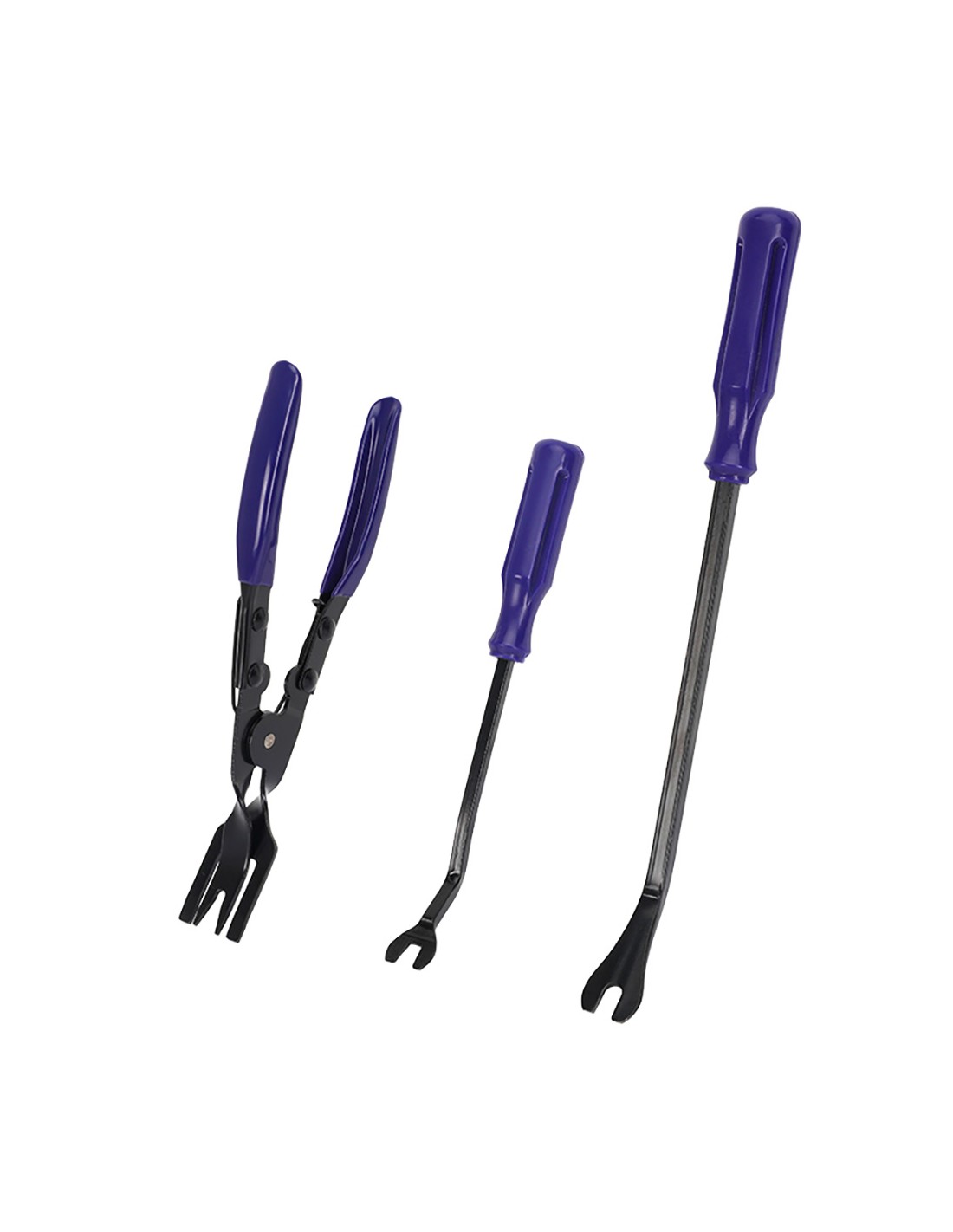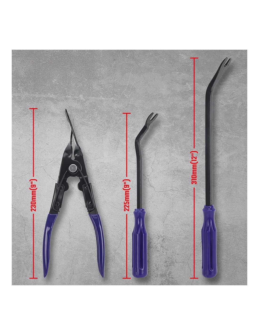 Juego de 3 herramientas de eliminación de hebilla de remache. contenido: dos palancas con mango 225 mm y 310 mm alicates 2 en 1 de 230 mm de uña cuadrada adecuados para montar/desmontar paneles, grapas, molduras en automóviles
