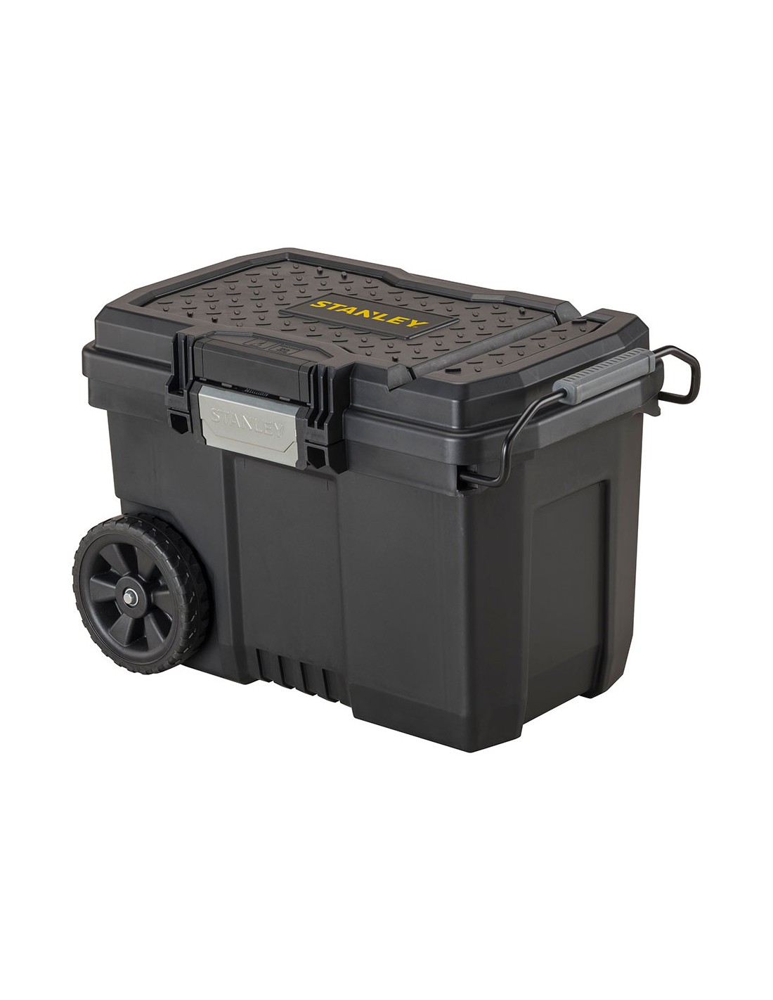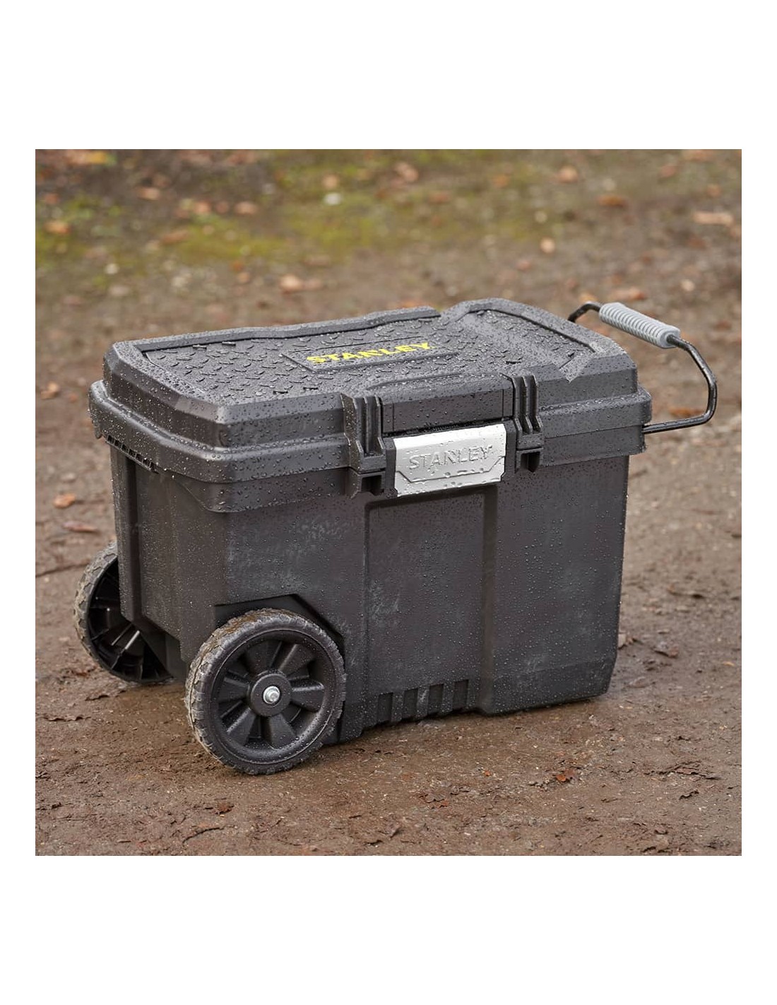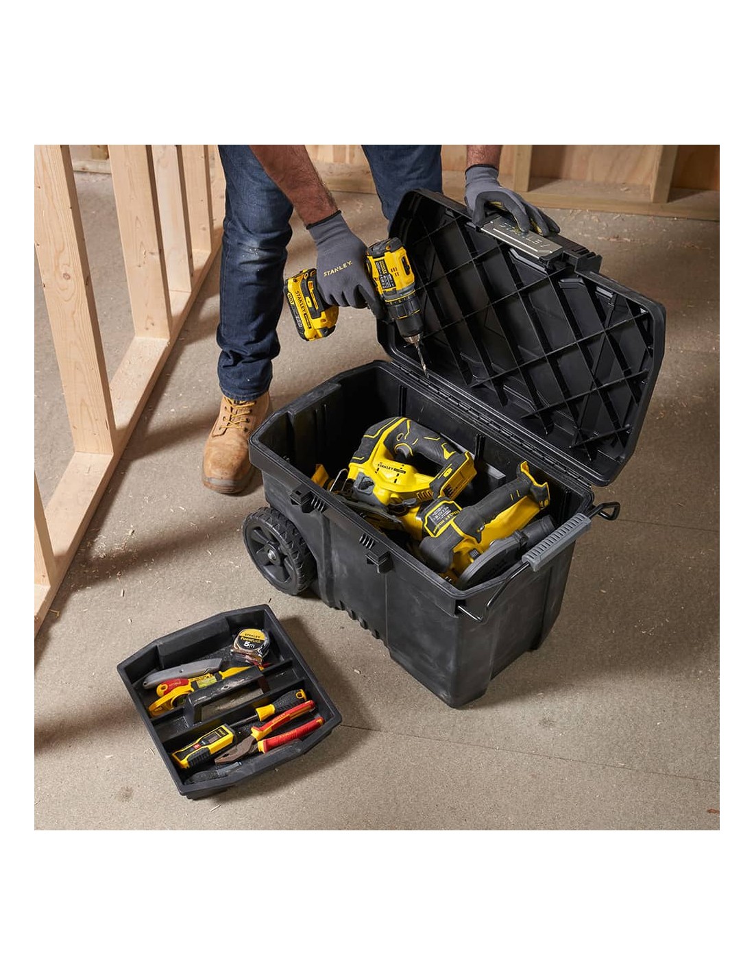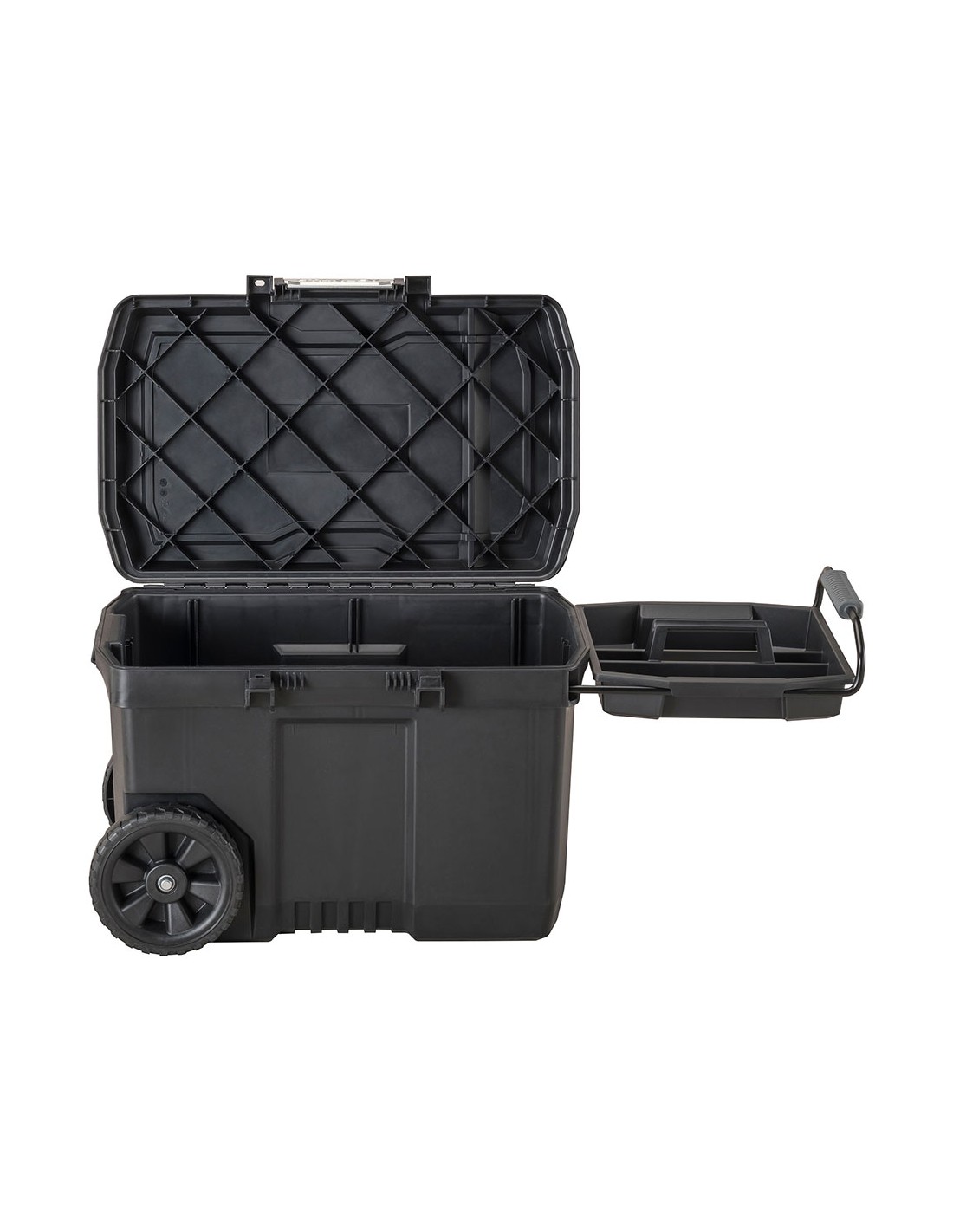 Arcón transporte one-touch 57 l, carga máxima: 40 kg, ip43, con bandeja en el interior extraíble asa telescópica metálica ruedas de grandes dimensiones de 18 cm para fácil manejo asa bimaterial en la tapa sistema de apertura y cierre con una sola mano ranura en "v" en la tapa para utilizar como soporte en el corte de materiales, color negro