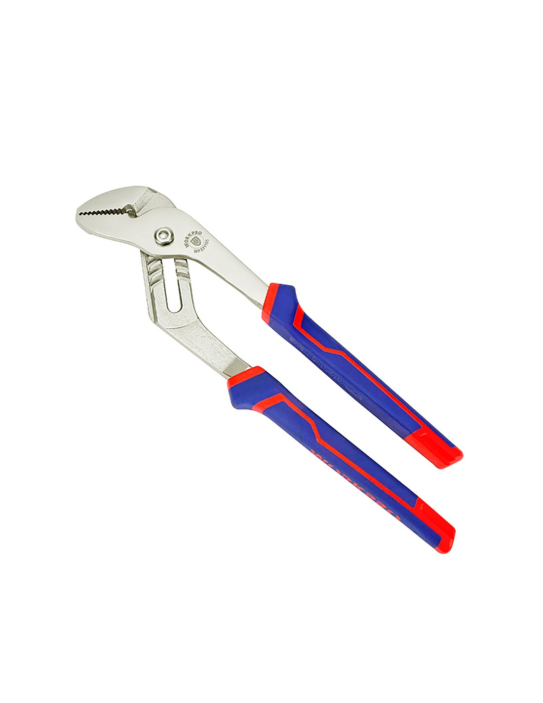 Alicates pico de loro rectos 250 mm, acero al carbono forjado con recubrimiento de ni-fe, mango de confort bimaterial, diseño de mordaza recta y apertura máxima de 48 mm