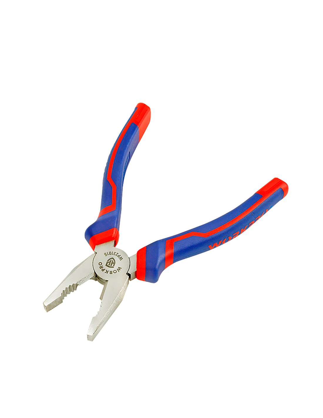 Alicates universales 160 mm, acero al carbono forjado con recubrimiento de ni-fe, mango de confort bimaterial 30% más ancho, más cómodo