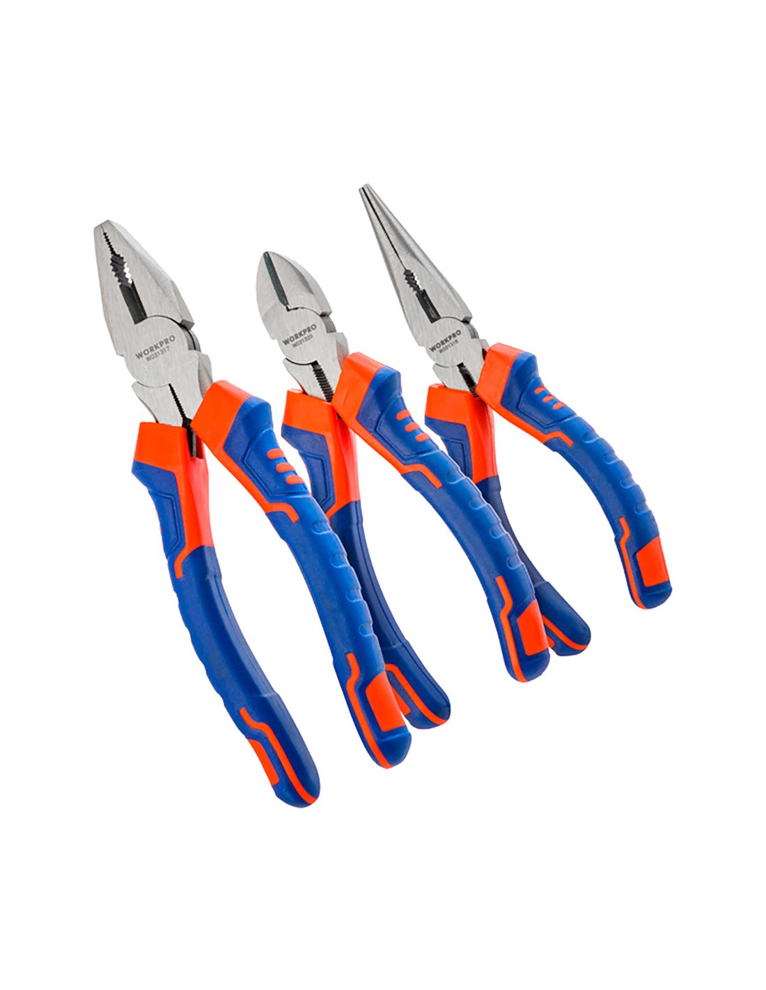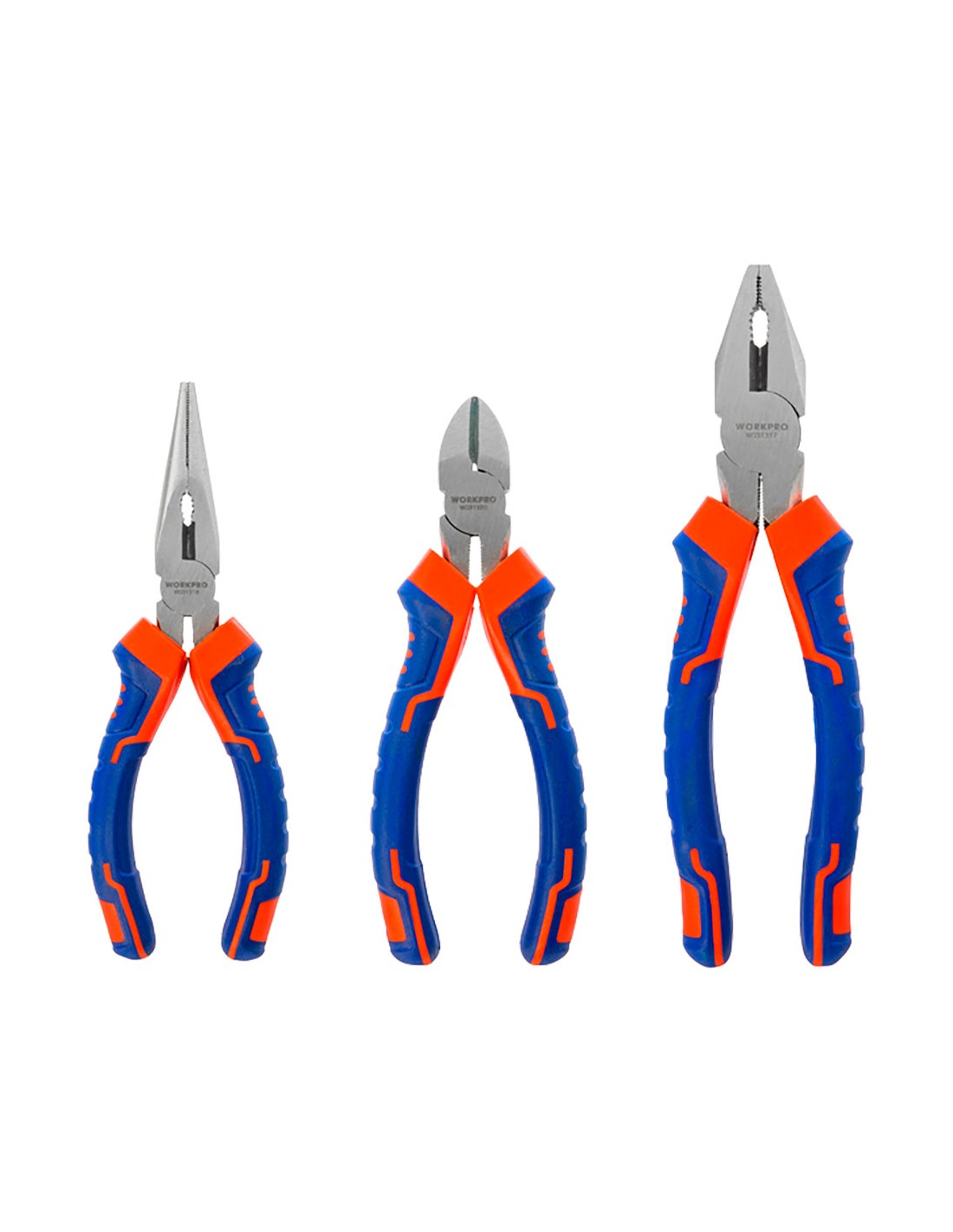 Juego de 3 alicates, acero al carbono forjado, mango de confort bimaterial se compone de 1 uds alicates universal 200 mm 1 uds alicates de punta larga 160 mm alicates de corte diagonal 160 mm