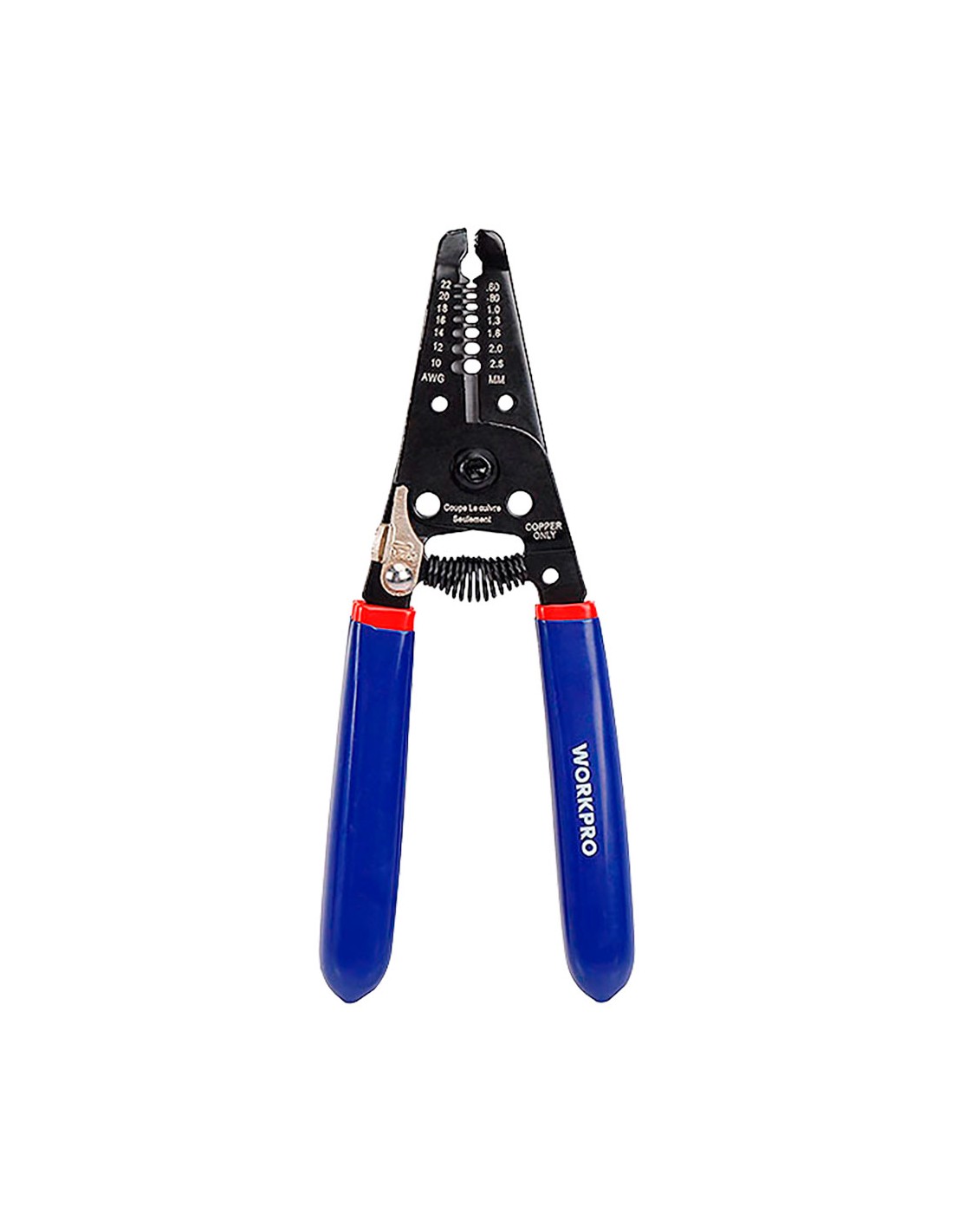 Pelacables automático 150 mm, corta y pela fácilmente cables 0,6 - 2,6 mm² (10-22 awg), corta pernos de forma limpia, marcas de calibre fáciles de leer, agujeros para doblar y formar cables, cargado por resorte para acción de autoapertura