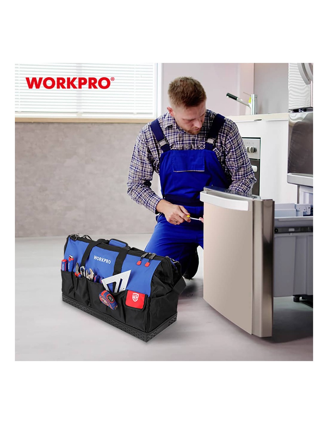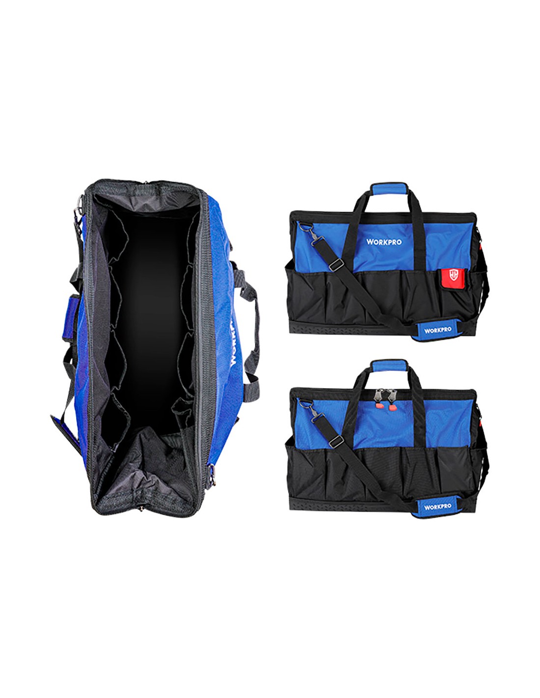 Bolsa de herramientas con cremallera 60 cm, con correa ajustable, compartimento principal + 20 bolsillos, hecha de poliester 600d, base impermeable 60 x 26 x 40 cm