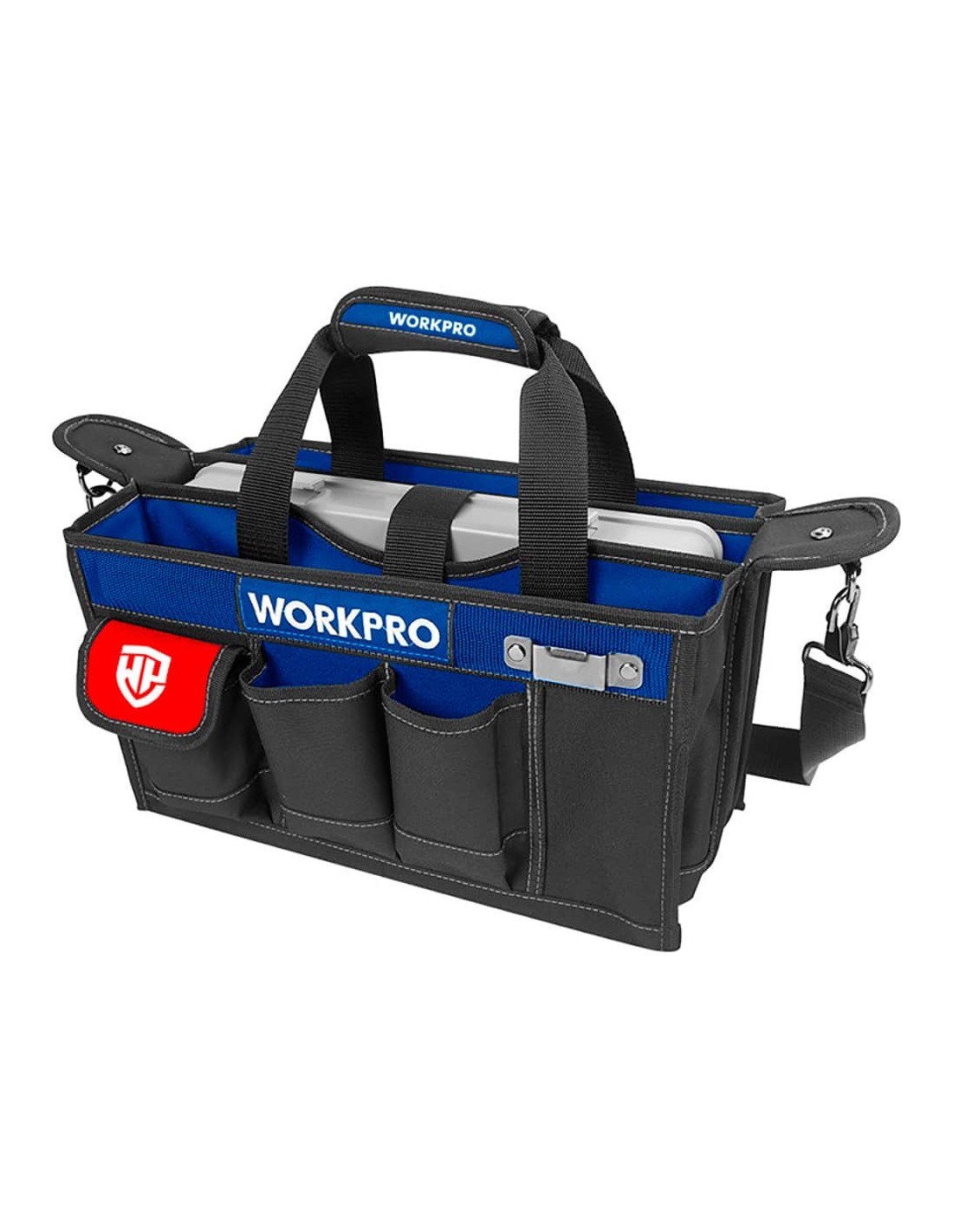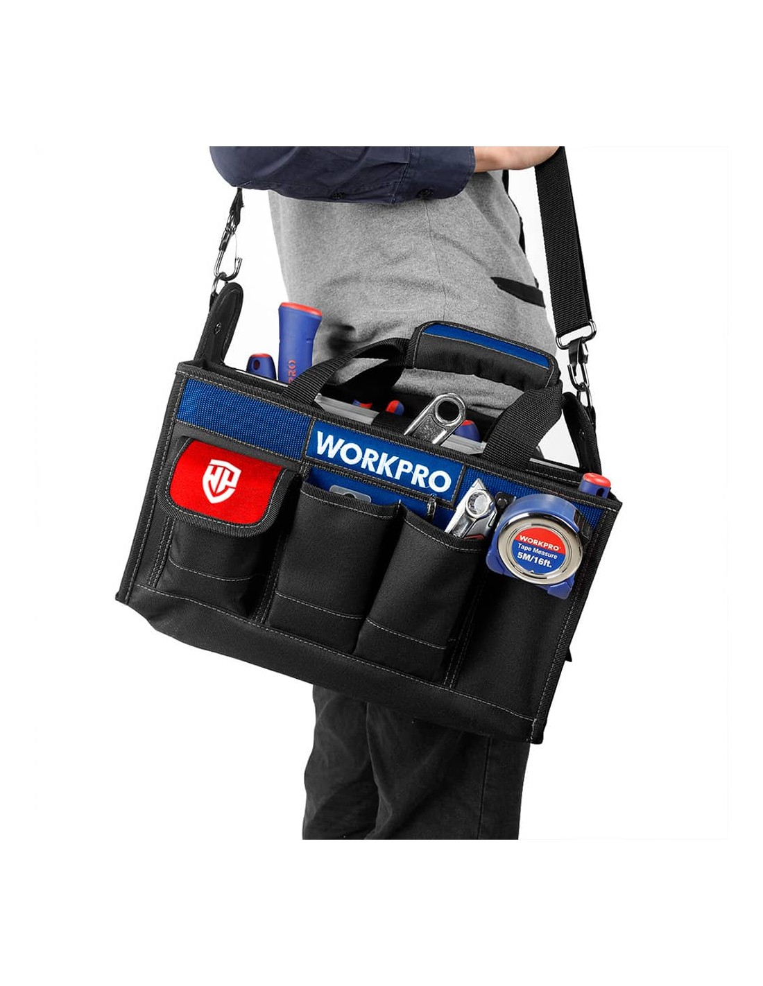 Bolsa de herramientas con correa ajustable, protector de asa reforzado estuche de almacenamiento de múltiples compartimentos incluido 11 bolsillos multiusos en el interior y 8 en el exterior para organizar herramientas y accesorios, 39 x 22 x 29 cm