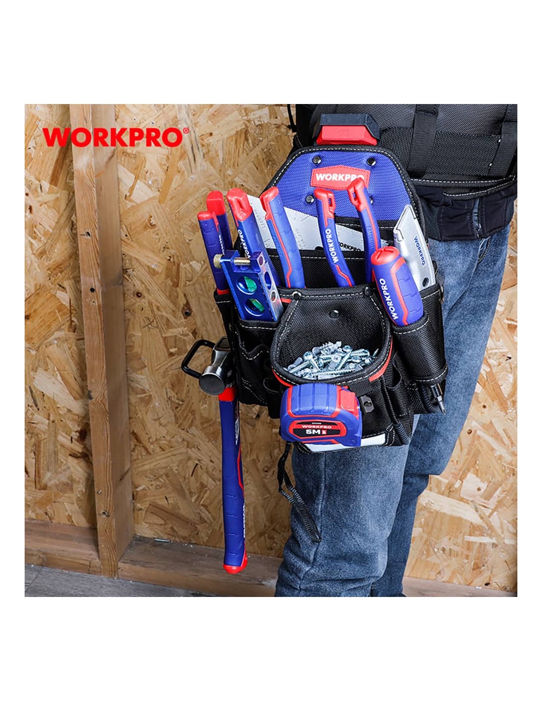 Bolsa cintura de contratista, cambio rápido, poliéster 1800d, varios bolsillos para herramientas, duradero, fácil de transportar, con tira reflectante, 325 x 225 x 320 mm