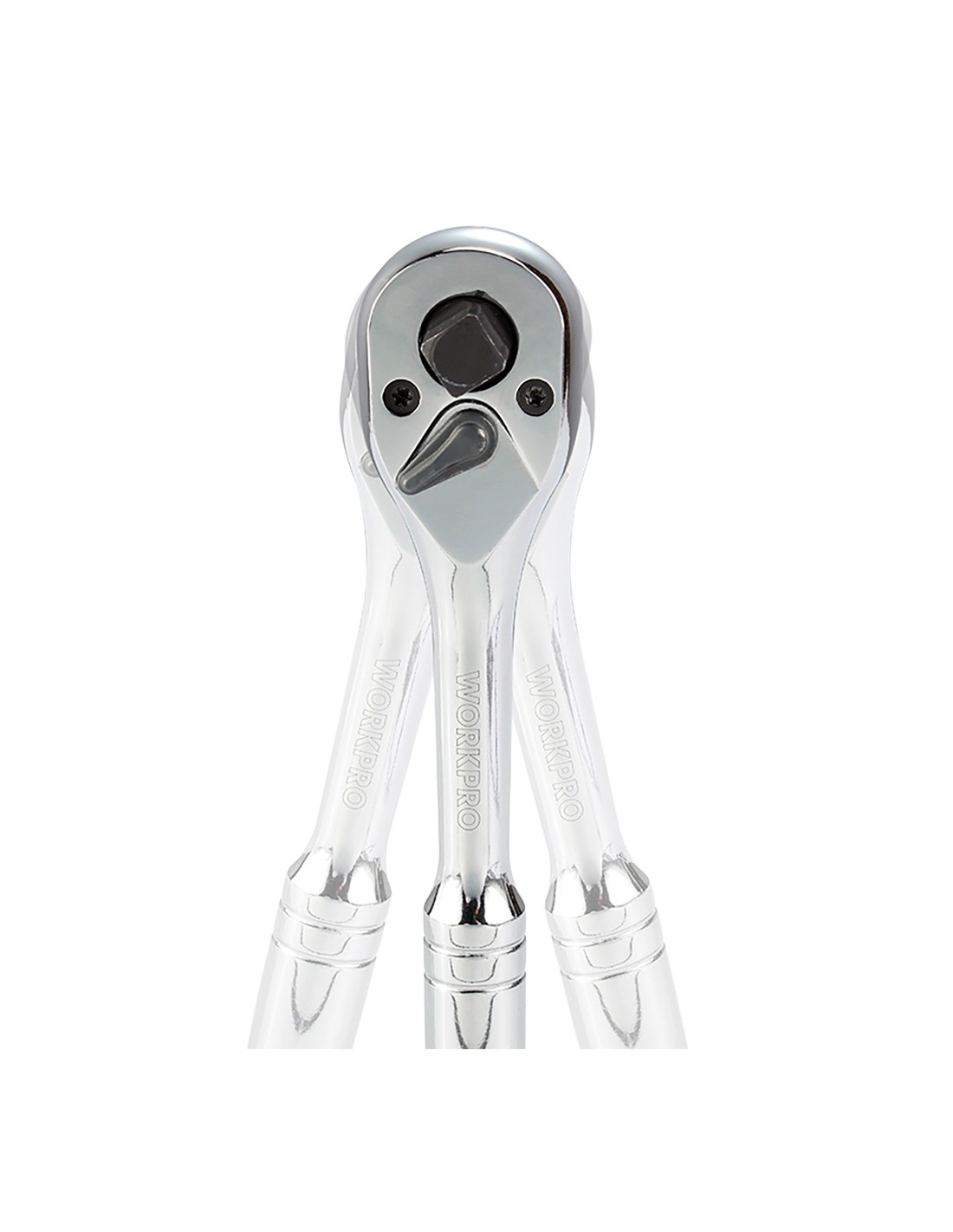 Carraca 3 en 1, 1/4" + 3/8" + 1/2" acero al cromo-vanadio 72 dientes cabeza de carraca pavonada y tratada térmicamente