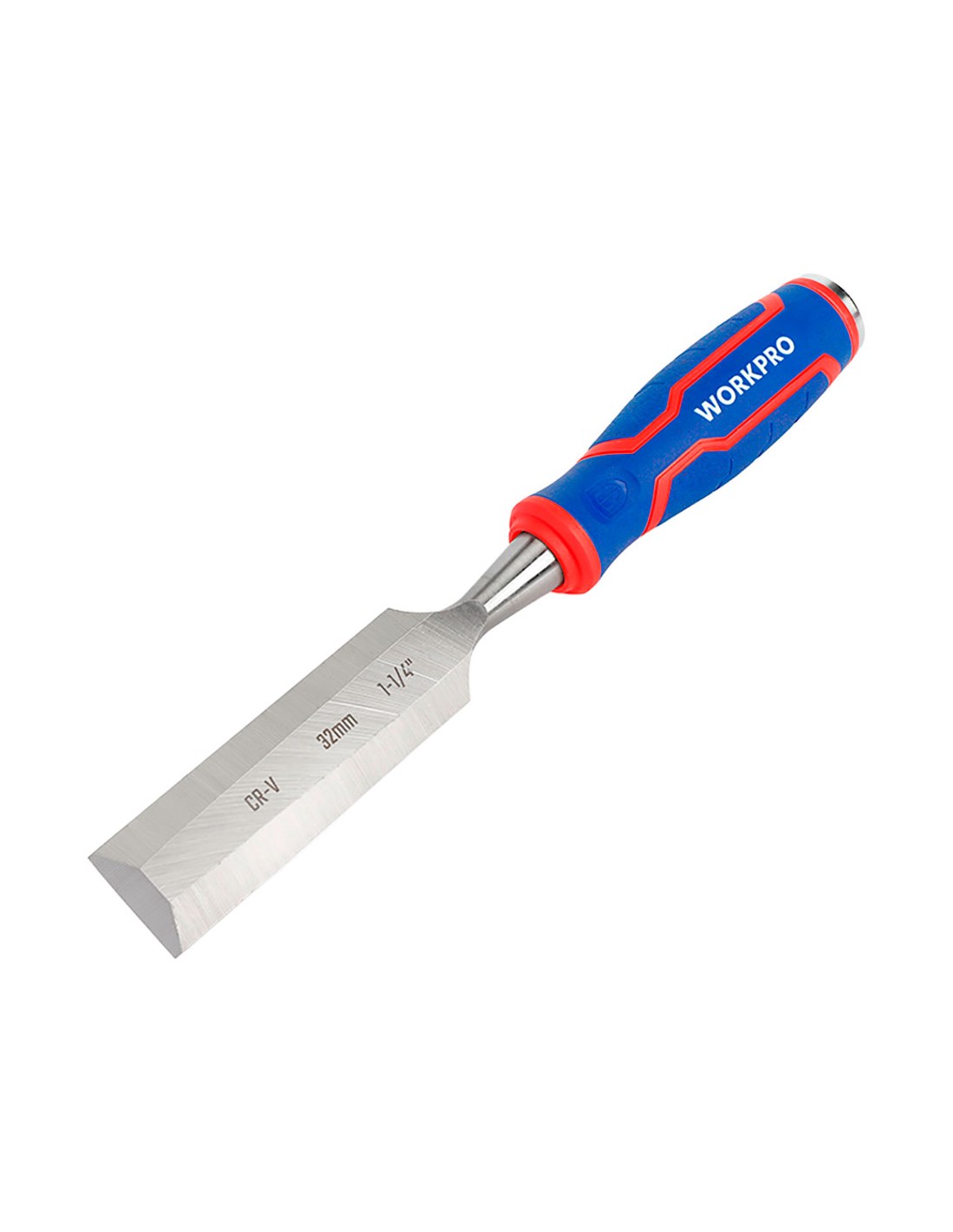 Formón para madera 32 mm hoja de acero al cromo-vanadio forjada, tratada térmicamente para retención del filo filo de la hoja un 30% más largo y afilado tope de acero diseñado para golpes fuertes con martillo o mazo mango de alta resistencia con agarre ergonómico