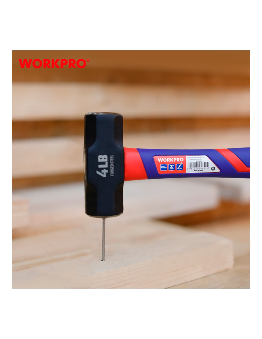 Martillo de cantero con mango de fibra de vidrio, 2000 g cabeza de acero al carbono forjado, mango de fibra de vidrio que absorbe golpes y vibraciones, empuñadura de goma texturizada para mayor comodidad