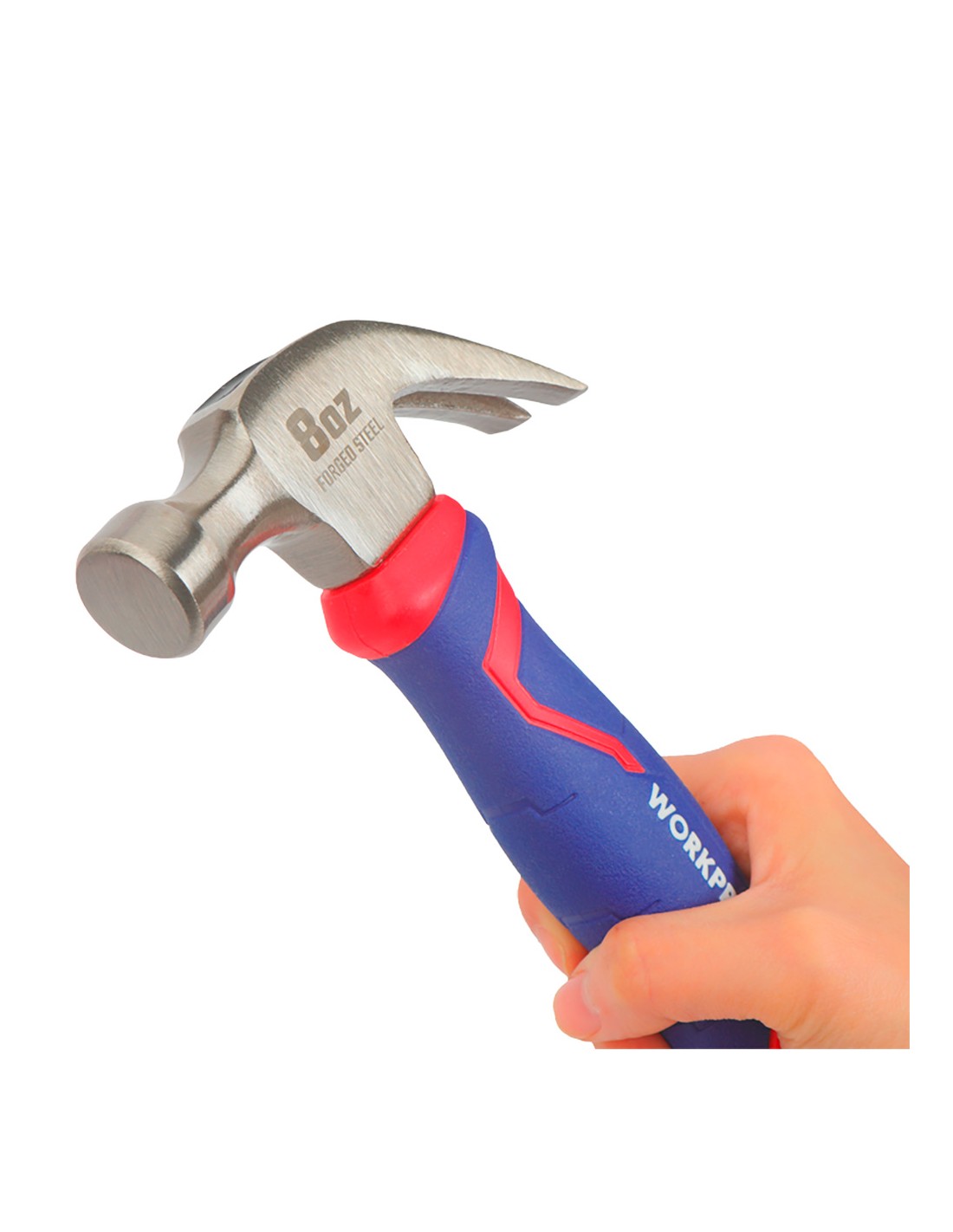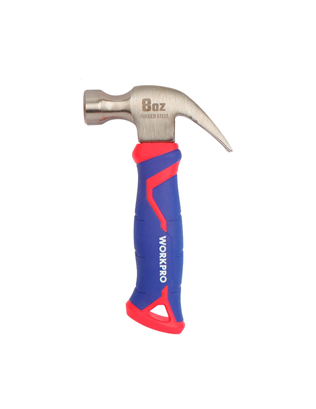 Martillo de carpintero mini, 225 g acero al carbono forjado, cabeza tratada térmicamente y pulida, mango de fibra de vidrio que absorbe golpes y vibraciones, goma texturizada que garantiza un agarre cómodo y seguro