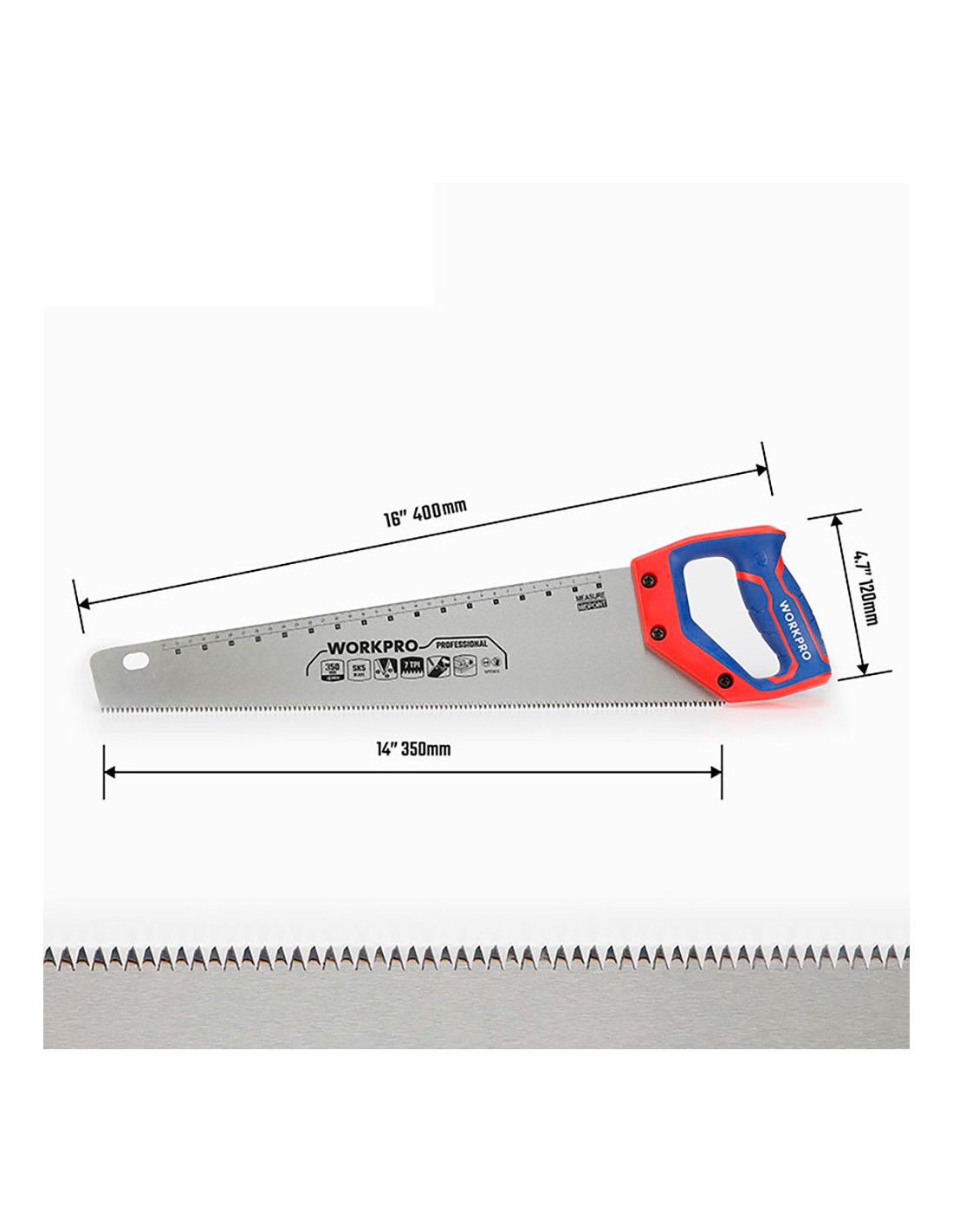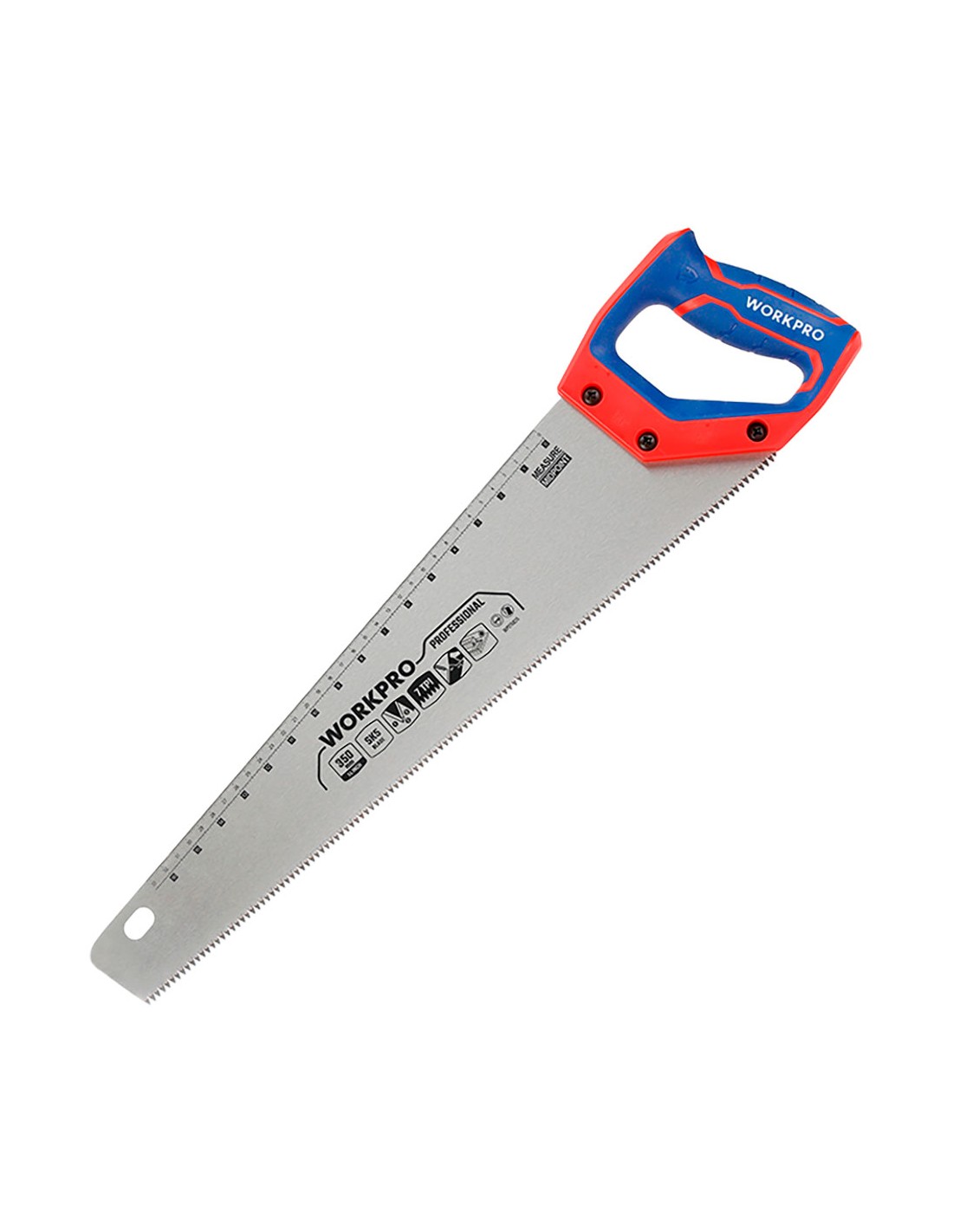 Serrucho universal sk5, 7 tpi, 350 mm mango ergonómico con bordes diseñados para ayudarte a trazar ángulos comunes sin necesidad de otra herramienta (90° y 45°) con marca de escala hoja de sierra sk5, más duradera dientes de triple afilado para el corte rápido de madera, bambú, pvc y otros materiales