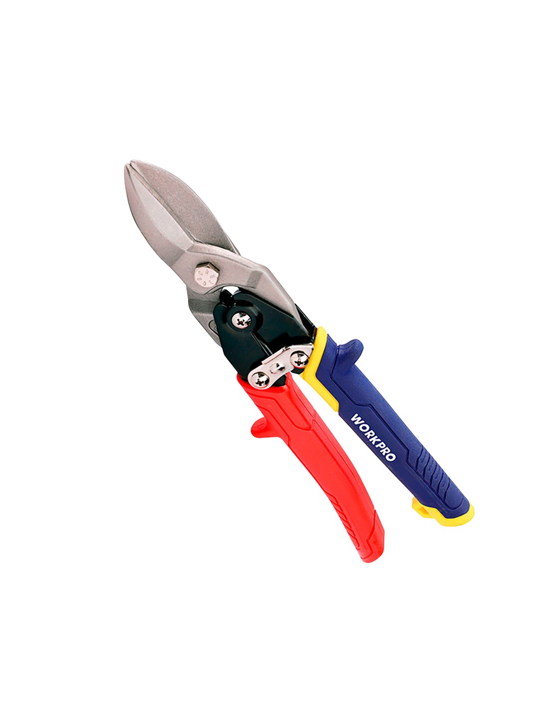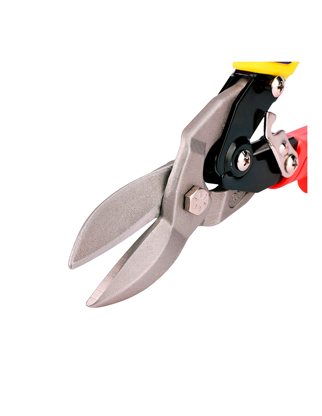 Tijera para chapa, corte recto 250 mm bordes de corte serrados para evitar que los materiales se deslicen durante el uso, hojas de acero forjado cromo molibdeno diseño ergonómico, mango tri-material, para cortar chapa, vinilo, plástico, goma, etc..., corta hasta calibre 1,2 mm de chapa laminada en frío o calibre 0,8 mm de acero inoxidable