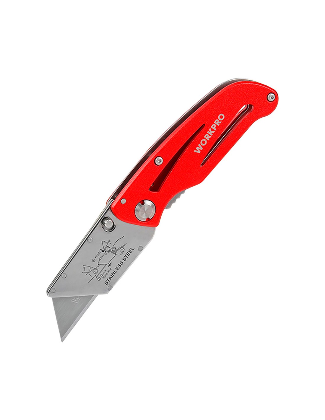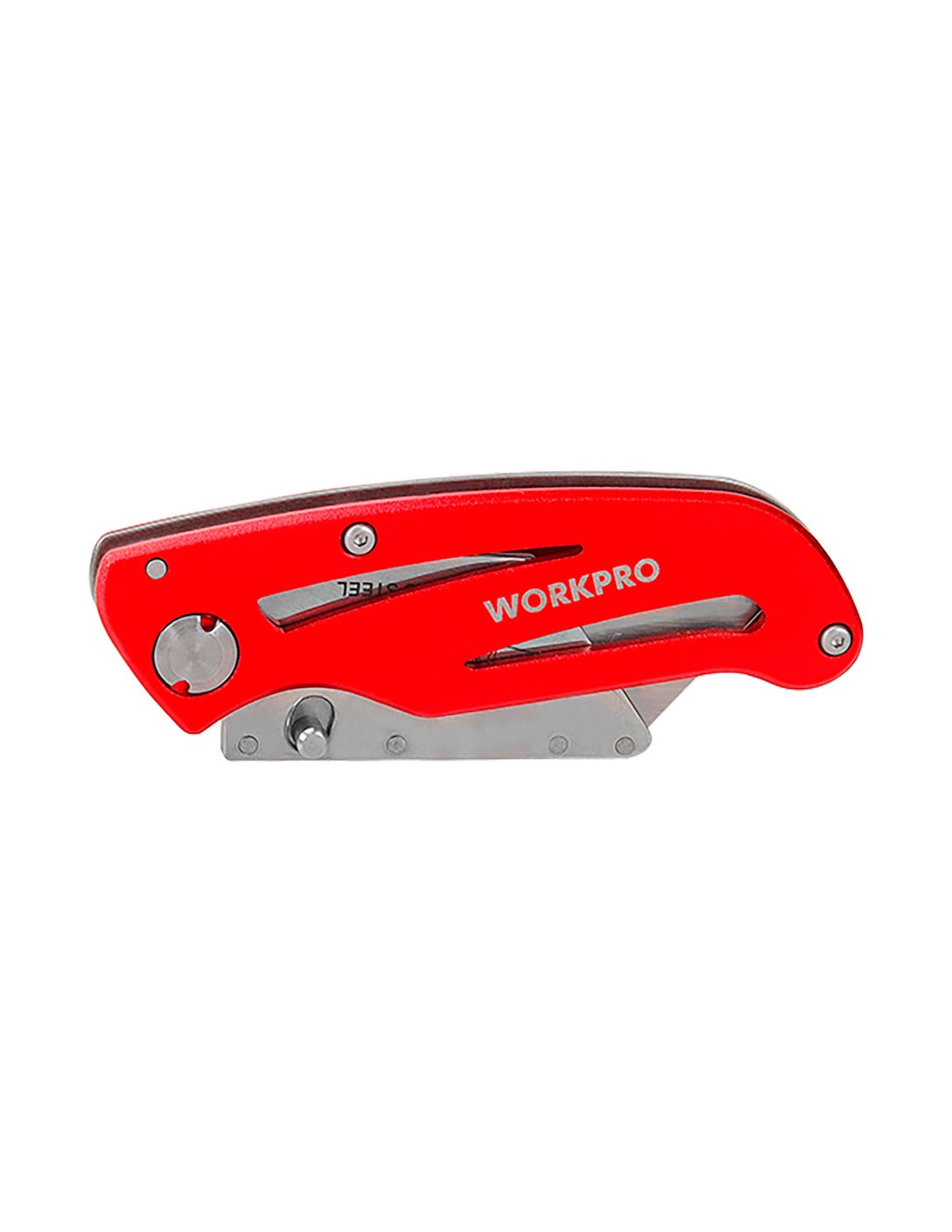 Navaja multiuso, plegable, mecanismo de cambio de cuchilla rápido patentado. mango ligero de aluminio anodizado. incluye clip. compatible con todas las chuchillas estándar