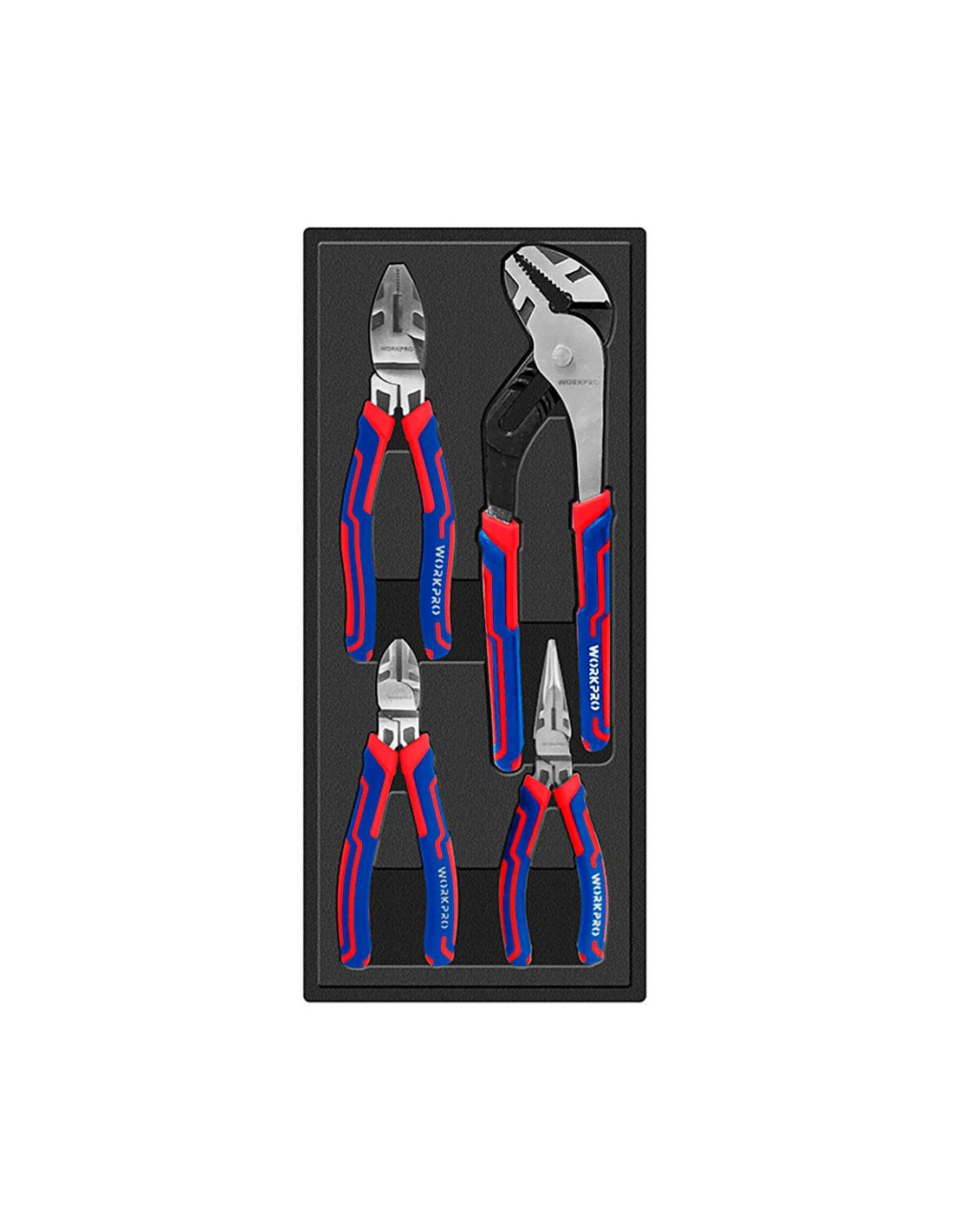 Juego de 4 alicates forjados al cromo vanadio, que se compone de 1 ud alicates de punta larga 160 mm 1 ud alicates de corte diagonal 160 mm 1 ud alicates universales 200 mm 1 ud alicates pico de loro 250 mm