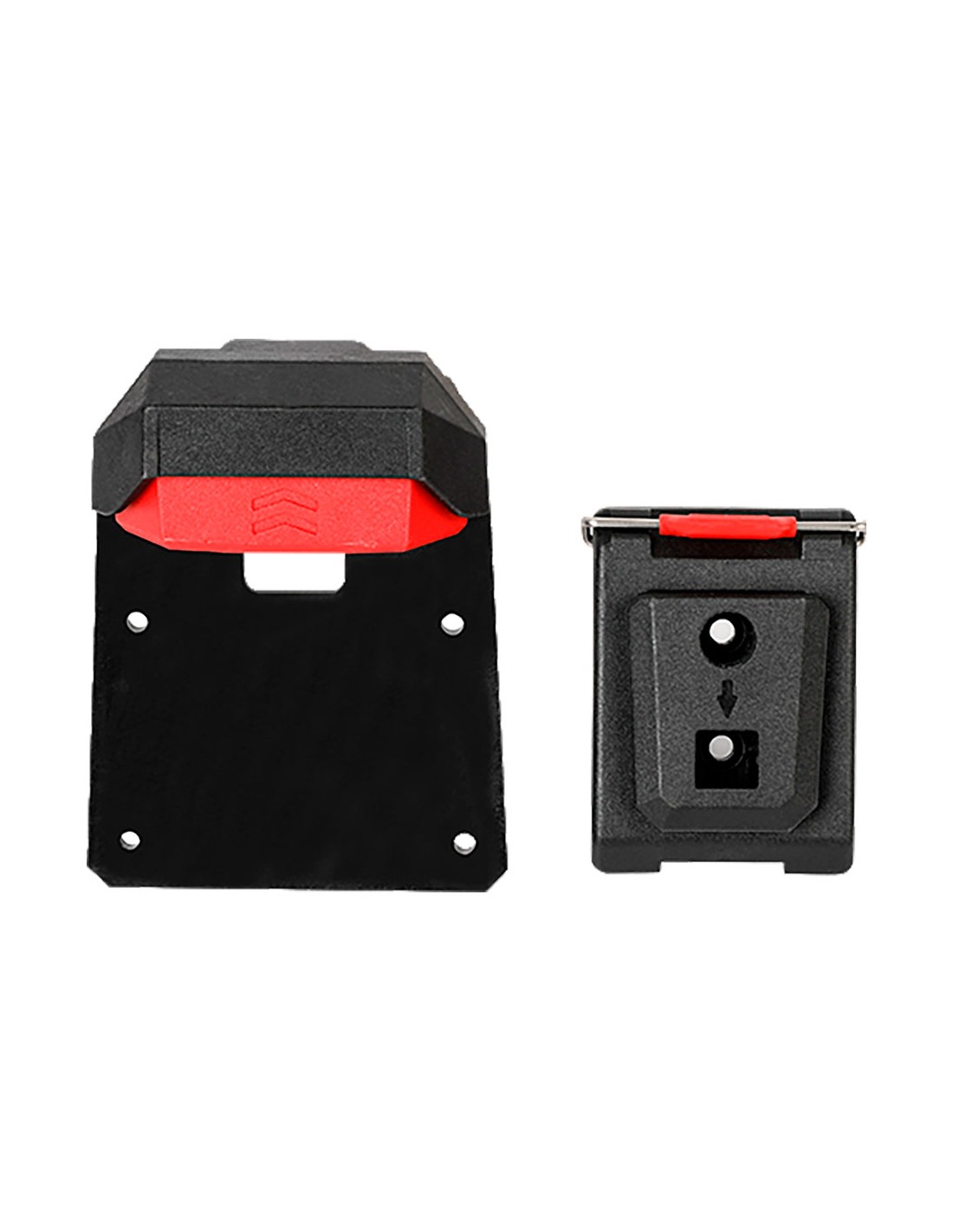 Clip y enganche portaherramientas, juego macho-hembra material pa6 + gf30 / pp. para cinturón con función de cambio rápido, duradero, fácil de transportar medidas enganche para el cinturón: 52 x 72 x 26 mm medidas: extracción rápida: 106 x 82 x 35 mm, medida total: 107 x 82 x 55 mm