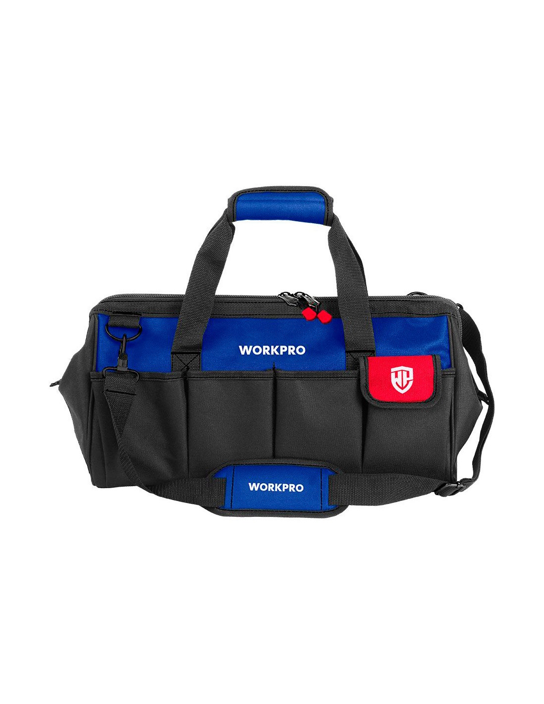 Bolsa de herramientas con cremallera 42 cm, con correa ajustable, hecha de poliéster 840d, base impermeable, compartimento principal + 19 bolsillos 42 x 24 x 25 cm