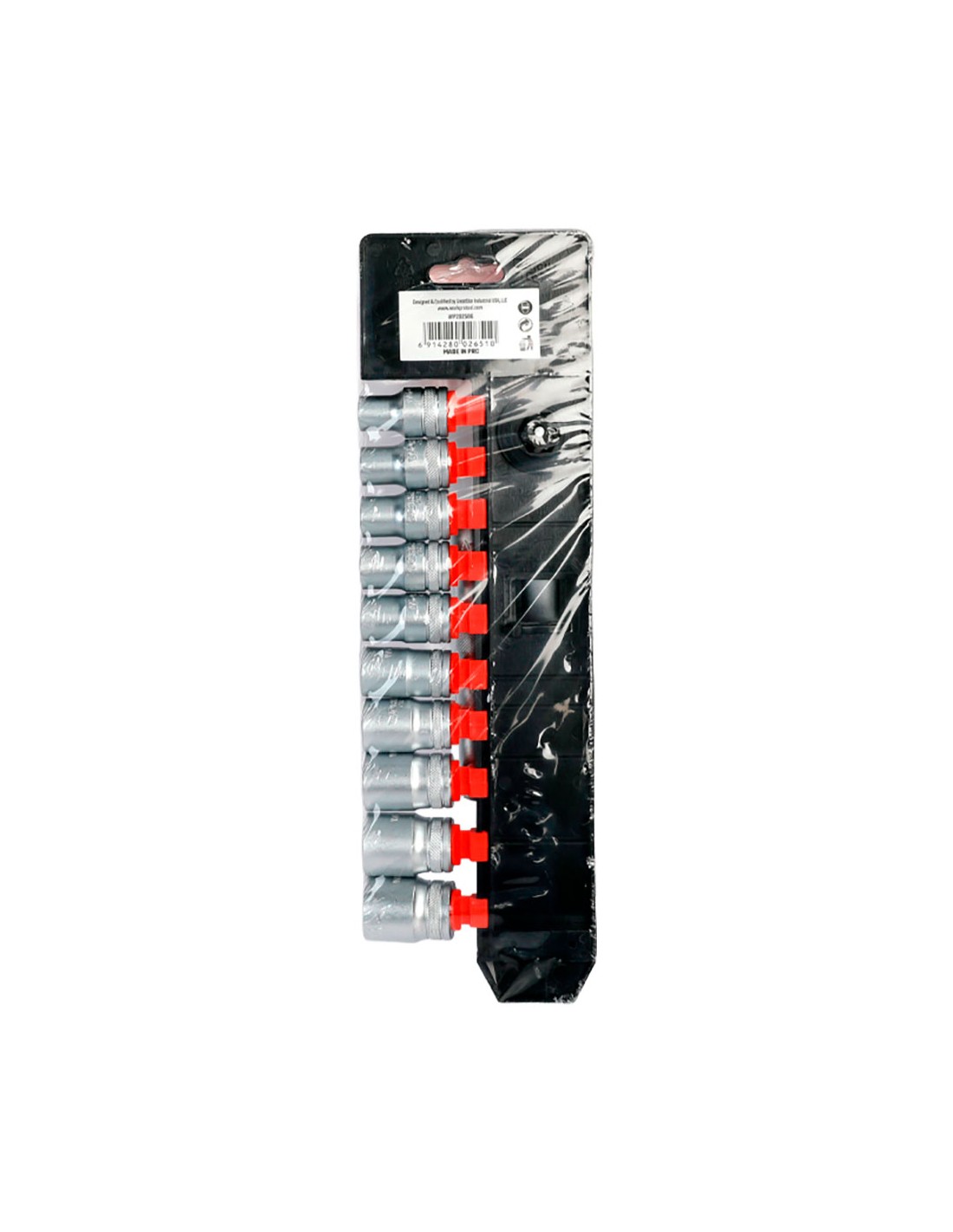 Juego de carraca y vasos cromo vanadio mate ½ pulg, 12 piezas, métrico incluye: 1 llave de carraca de ½ pulg de 72 dientes 10 vasos hexagonales 10, 11, 12, 13, 14, 15, 17, 19, 21 y 22 mm 1 barra de extensión 127 mm