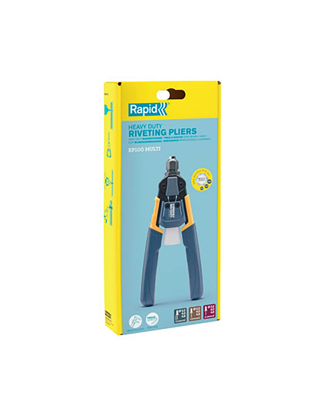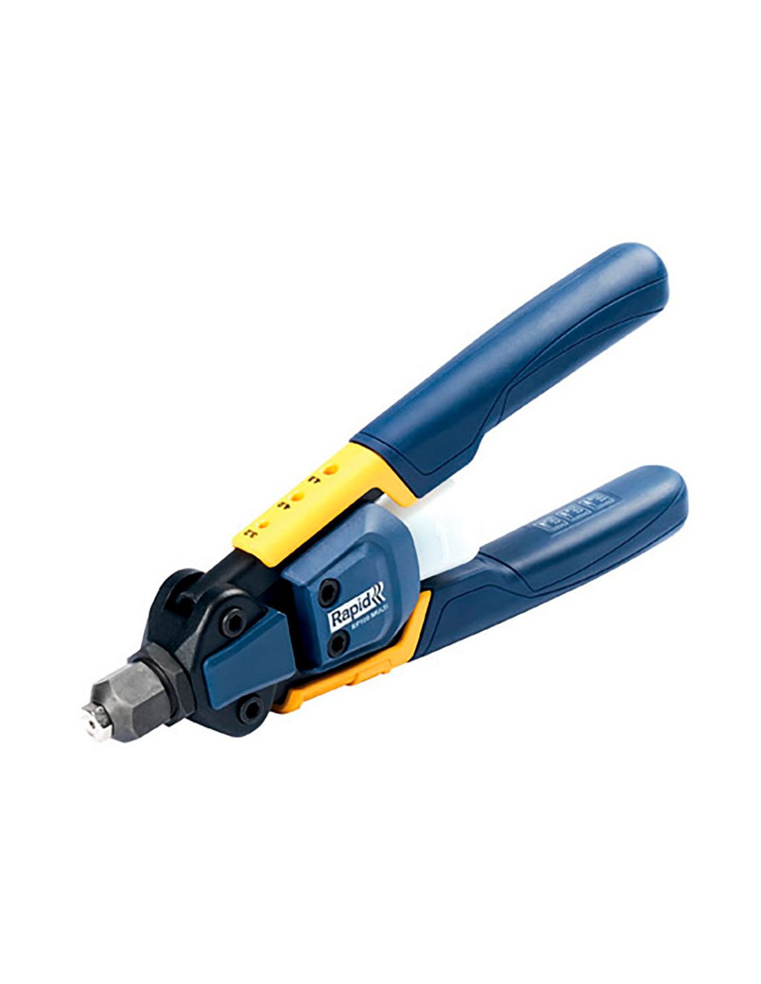 Remachadora manual rp100 multi, profesional. adecuadas para todo tipo de trabajos de chapa y reparaciones. la tecnología de reducción de potencia y su mango cómodo y ergonómico hacen que la rp100 multi sea especialmente útil en proyectos de gran envergadura, ya que puede trabajar durante más tiempo y clavar muchos remaches sin fatiga muscular. con su exclusiva boquilla múltiple, puede cambiar rápidamente de tamaño de remache sin cambiar de boquilla. 12,5 × 29 × 4 cm