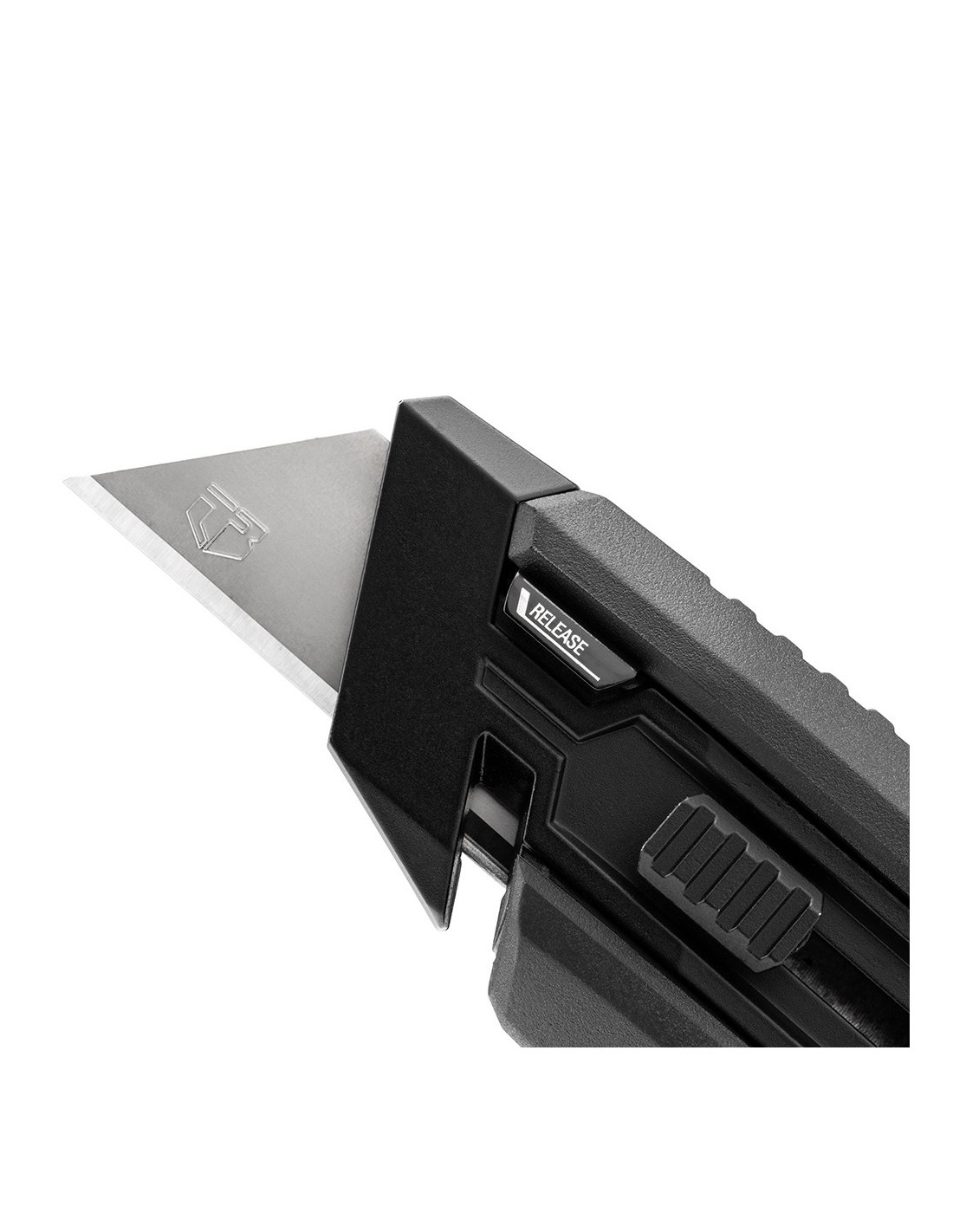 Cúter con hoja con autocarga retráctil, cortador de cuerda y herramienta de palanca para una gran variedad de aplicaciones, botón de liberación rápida para cambio de hojas sin herramientas, 5 hojas incluidas en el almacenamiento para 20 cuchillas, mango ergonómico triple inyectado, bucle de amarre, compatible con cuchillas trapezoidales estándar